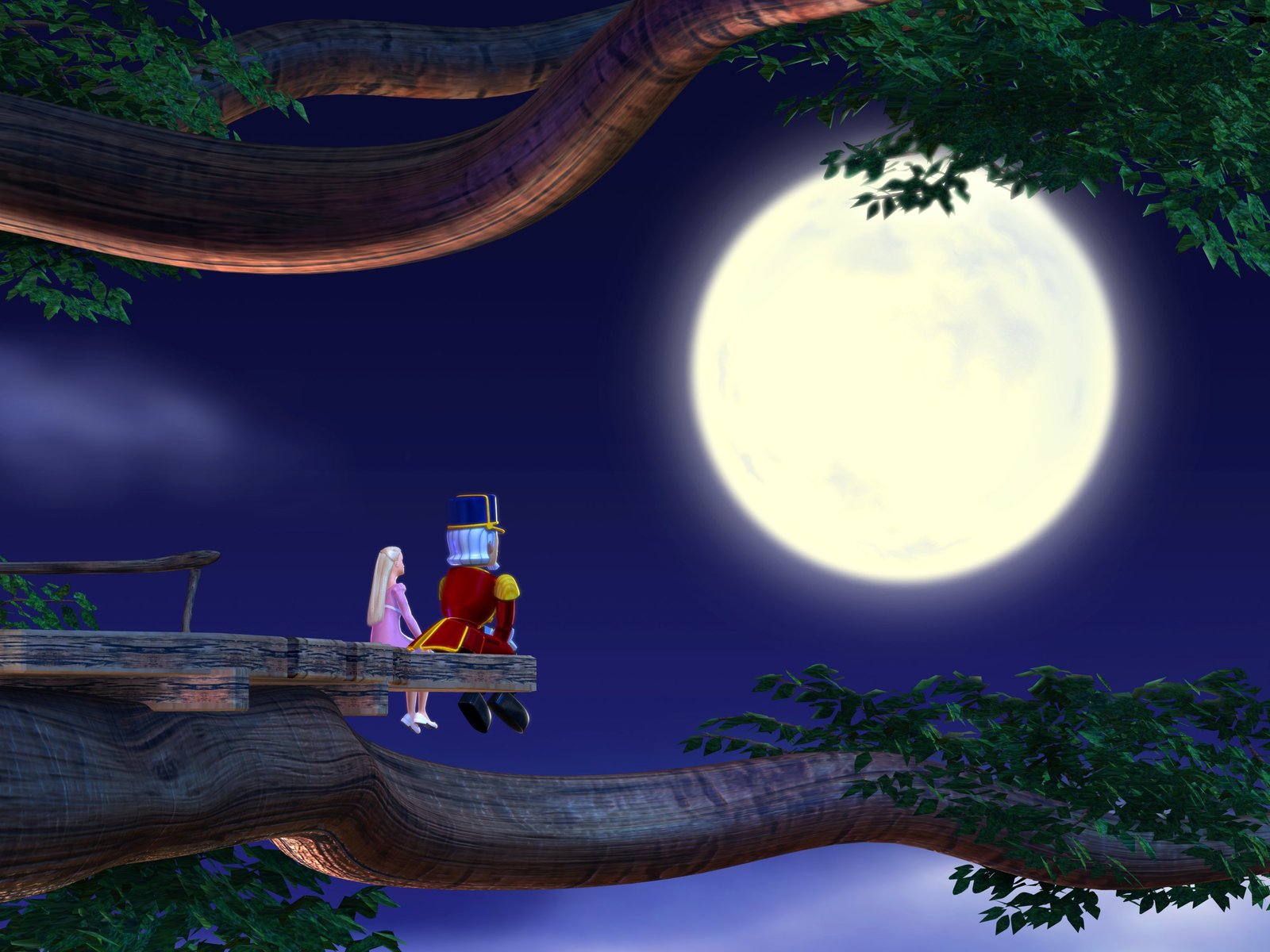 Der NussknackerBarbie, welche die Rolle der Clara spielt, und der Nußknacker geniessen den Mondschein, bevor sie gemeinsam zu neuen Abenteuern aufbrechen.Bild: © TOGGO plus