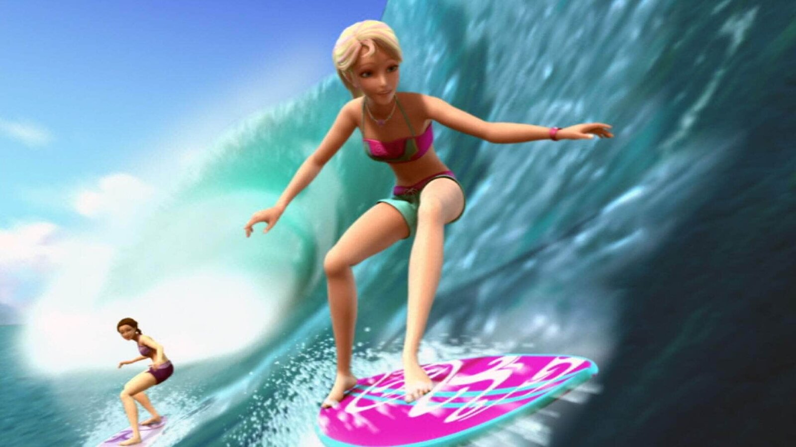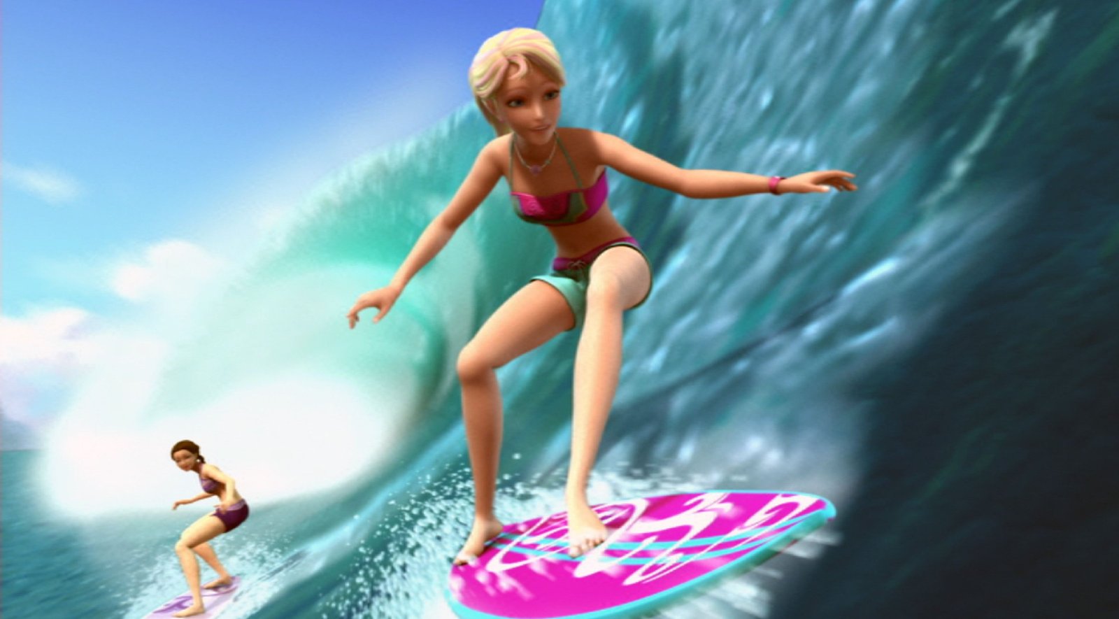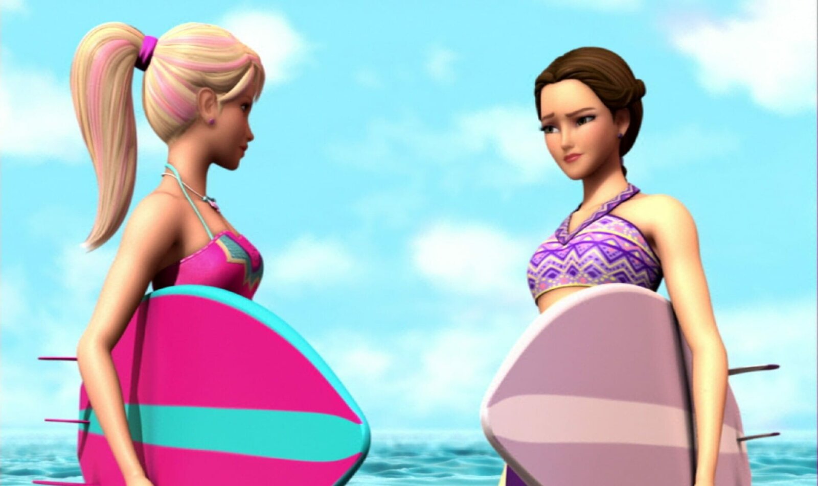 Barbie und das Geheimnis von Oceana 2Merliah und ihre Erzrivalin Kylie (re.) kämpfen um die Surfweltmeisterschaft.Bild: © Super RTL