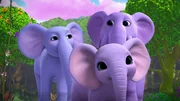 Barbie & Chelsea: Das Dschungel-AbenteuerKurz bevor das Elefantenbaby die Flamme auspustet und sich ihre Eltern herbeiwünscht, tauchen diese plötzlich auf. Sie versprechen ihr eine Party zu ihrer Rückkehr, durch die den anderen Tieren ihr Wunsch erfüllt wird. So bleibt der Wunsch, den das magische Juwel erfüllt, doch für Chelsea übrig.Bild: © SUPER RTL
