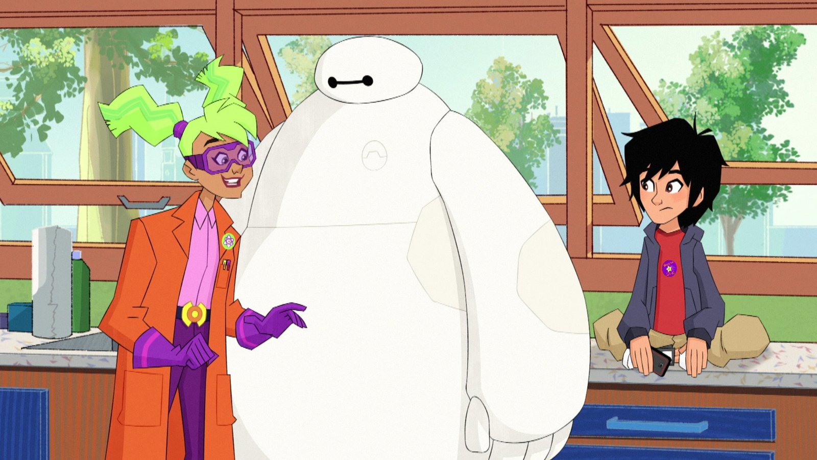 Ein Date für Tante CassBIG HERO 6 - "Baymax Returns" - Set in the fictional city of San Fransokyo, 14-year-old tech genius Hiro begins school as the new prodigy at San Fransokyo Institute of Technology and sets off to rebuild Baymax. However, his overconfidence and penchant for taking shortcuts leads him and the newly minted Big Hero 6 team Ð Wasabi, Honey Lemon, Go Go and Fred Ð into trouble. The one-hour premiere airs Monday, November 20 (8:00 - 9:00 P.M. EDT) on Disney XD. (Disney XD) HIRO HAMADA, BAYMAX, AUNT CASSBild: © 2017 Disney Enterprises, Inc. All rights reserved.
