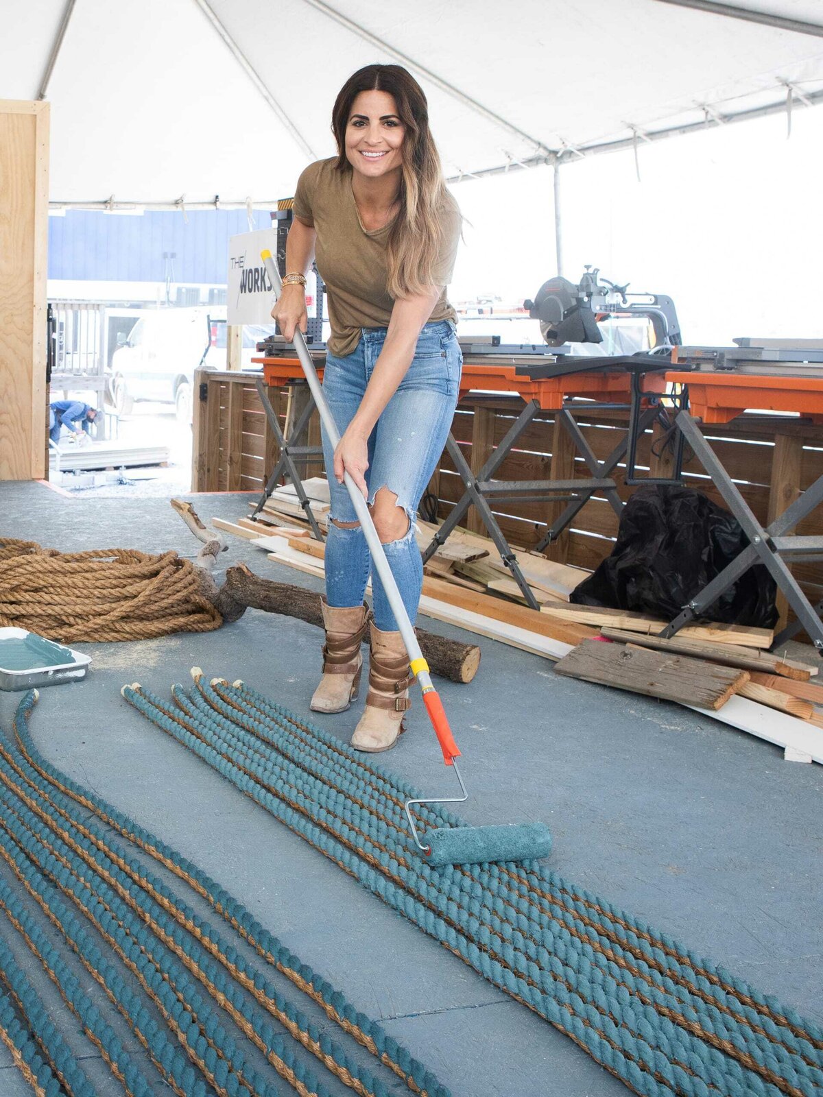 Wer nicht wagt, der nicht gewinntAs seen on HGTV's Battle on the Beach, Alison Victoria paints rope in the workshop to create a unique art piece for the living room. (Working)Bild: © HGTV