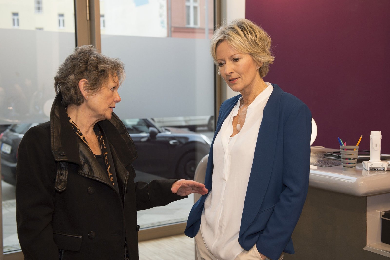 KonfrontationLiz (Olivia Augustinski) will ihre Agenturanteile verkaufen und führt ein Gespräch mit dem Agentur-Investor Rolf (Rolf Scheider).Bild: © RTL / Daniel Ende