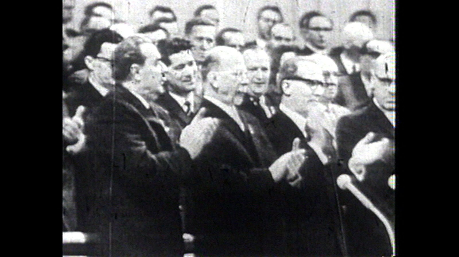 Das Jahr 1966Das Jahr 1966 – Studenten protestieren, langhaarige Jugendliche erhitzen die Gemüter, ein sowjetisches Militärflugzeug stürzt in den Stößensee und die SED feiert Geburtstag. Eine Berlin-Chronik der Superlative: 30 Folgen, Jahr für Jahr erzählt, von 1961, dem Jahr des Mauerbaus, bis 1990, dem Jahr der Wiedervereinigung. Im Bild: Willy Brandt legt sein Amt als Bürgermeister nieder und wird Vizekanzler und Außenminister.Bild: © rbb