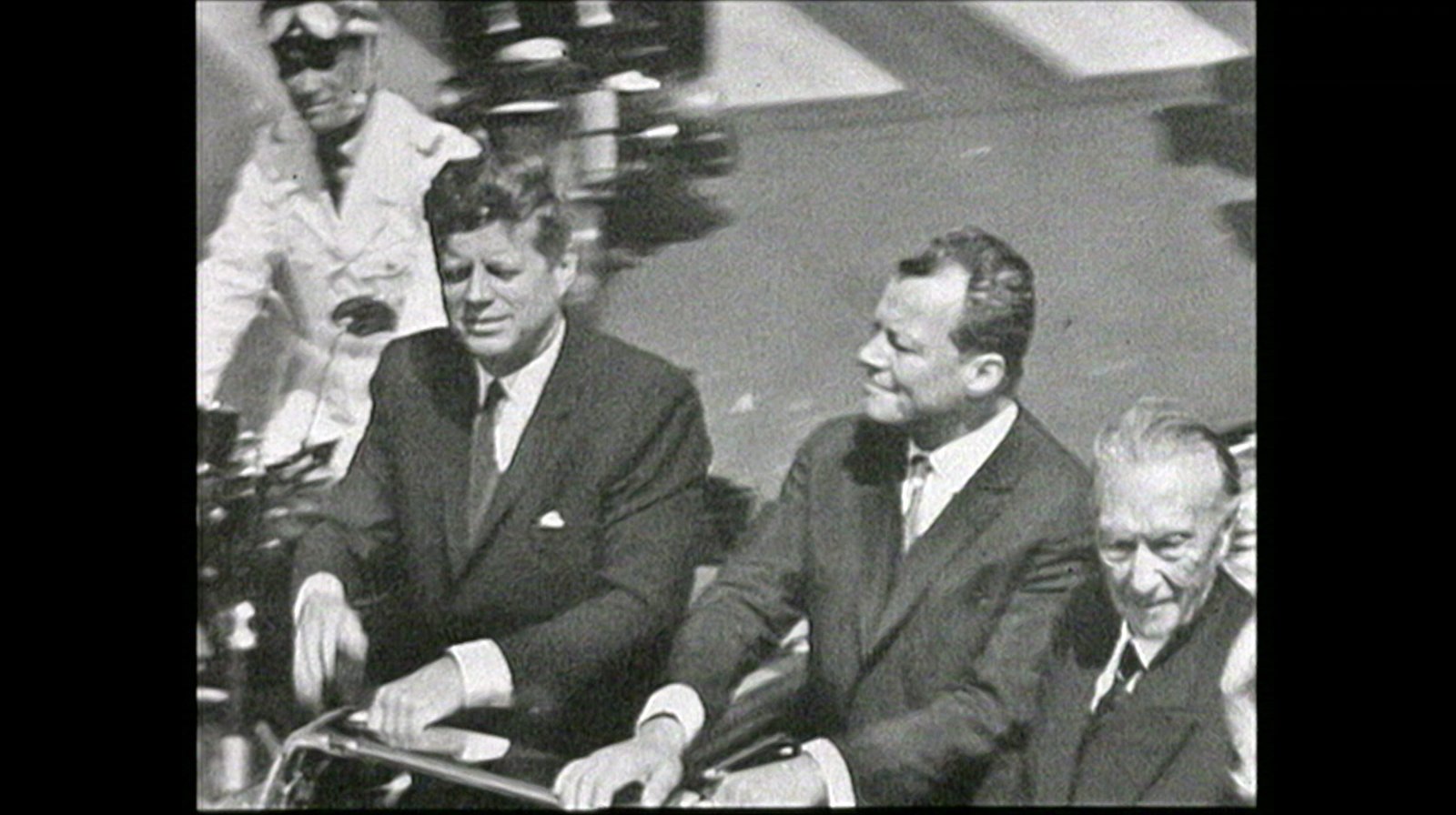 Das Jahr 1963Das Jahr 1963 – US-Präsident Kennedy besucht West-Berlin, Kreml-Chef Chruschtschow und die "Himmelsgeschwister" Gagarin und Tereschkowa den Osten der Stadt. Zu Weihnachten wird die Mauer dank des Passierscheinabkommens für wenige Tage durchlässiger. Eine Berlin-Chronik der Superlative: 30 Folgen, Jahr für Jahr erzählt, von 1961, dem Jahr des Mauerbaus, bis 1990, dem Jahr der Wiedervereinigung. - v.li.: John F. Kennedy, Willy Brandt, Konrad AdenauerBild: © rbb
