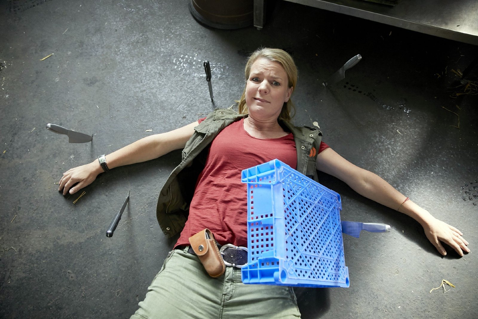 Die PatenAls Eva (Mirja Boes) auf der Arbeit fast von Messern getroffen wird, wird ihr klar, dass sie sich Gedanken um einen Paten für Marie machen sollte.Bild: © MG RTL D / Guido Engels