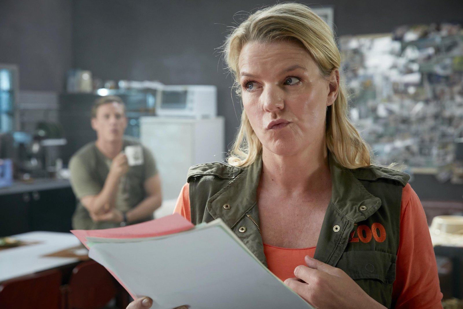 Die KlassenfahrtEva (Mirja Boes) und Dr. Kratzke (Martin Gruber) sprechen über die OP des Schweins, denn die Verwaltung will diese nicht genehmigen.Bild: © TVNOW / Guido Engels