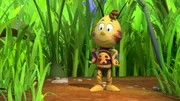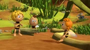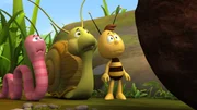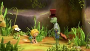 Wer zweimal lügt..."Die Biene Maja", "Wer zweimal lügt...." Frau Kassandra bittet Willi und Maja, den jüngeren Bienenschülern Summsi, Brummel und Flitzi die Wiese zu zeigen. Als erstes fliegen sie mit den Drillingen zu Oberst Paul und danach zu Kurt. Sowohl Paul als auch Kurt gestalten ihren Vortrag über ihre Aufgaben auf der Wiese sehr langatmig und so langweilen sich die Kleinen. Um sich zu unterhalten und den Wiesenaufenthalt spannender zu gestalten, verschwinden zwei und das Dritte schlägt falschen Alarm. Es behauptet gegenüber den Ameisen, Maja und Willi, dass jeweils zwei von ihnen in Not seien. Als dann Maja und Willi tatsächlich in Not geraten und die Drillinge bei den Ameisen um Hilfe bitten, glaubt Paul ihnen nicht mehr. Die Kleinen müssen die Ameisen erst mit einem Trick zum Teich locken, wo Paul dann mit eigenen Augen sieht, dass Maja und Willi vom Frosch bedroht werden.Bild: © ORF eins