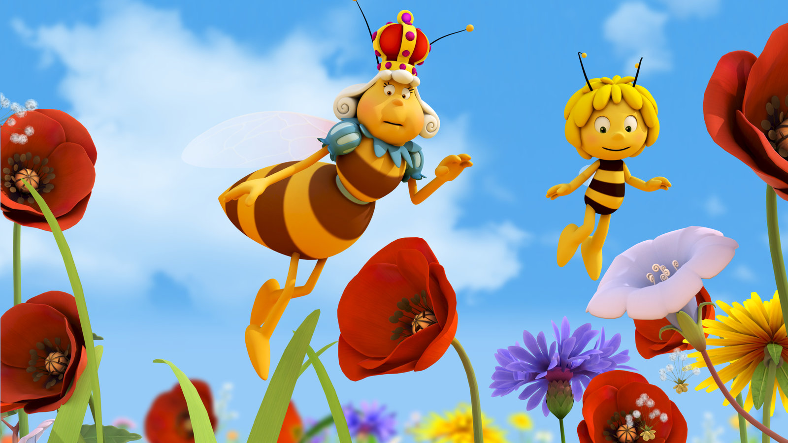 Eine königliche PauseMaja zeigt der Königin die Klatschmohnwiese.Bild: © ZDF und Studio 100 Animation