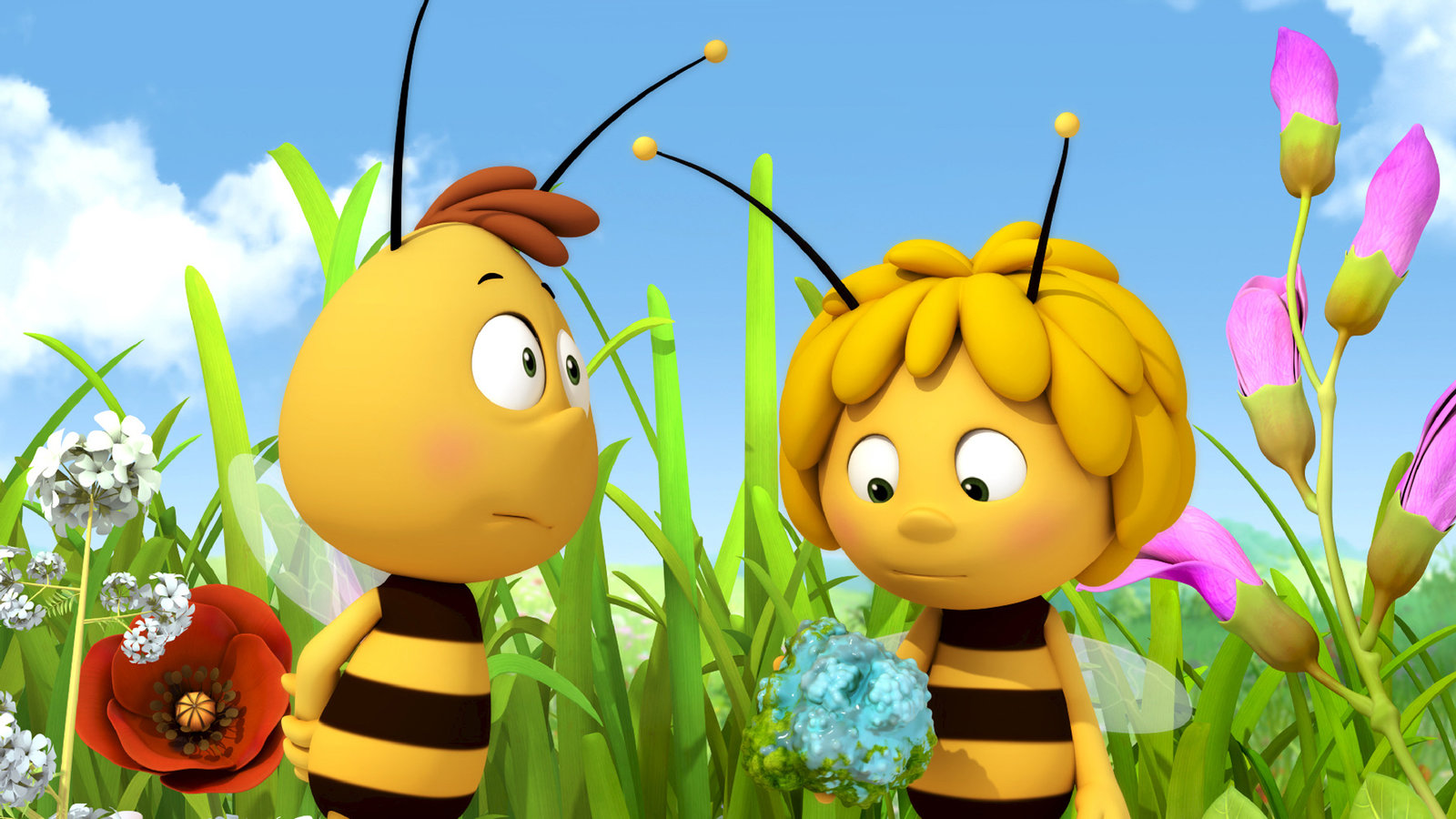 Die Wiesenrallye"Die Biene Maja", "Die Wiesenralley." Willi bekommt im Unterricht von Frau Kassandra regelmäßig schlechte Noten und darf deshalb nicht an der großen Rallye teilnehmen. Willis Selbstbewusstsein ist im Keller. Maja möchte ihrem Freund helfen und inszeniert mit ihren Freunden ein Wiesenball-Match, bei dem sie Willi gewinnen lassen, um ihn wieder aufzubauen. Es funktioniert so gut, dass Willi nur so vor Selbstbewusstsein strotzt und unbedingt an der Rallye teilnehmen will. In deren Verlauf muss Maja ihm aber gestehen, dass sie ihn absichtlich haben gewinnen lassen, und so schwindet Willi wieder der Mut und das Vertrauen in die eigenen Fähigkeiten. Der Zeitpunkt ist allerdings denkbar schlecht, denn Maja gerät durch die Kollision mit einem Frosch in große Gefahr und braucht dringend Hilfe von einem mutigen Freund. Für Maja besiegt Willi seine Angst und rettet die Freundin. Auch wenn die Rallye für die beiden verloren ist, sind Maja und Willi am Ende die strahlenden Sieger dieser Geschichte.Bild: © ORF eins