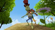 Kein Schlaf für MajaEine Grillendame fühlt sich angelockt von Johnnys Musik.Bild: © ZDF und Studio 100 Animation