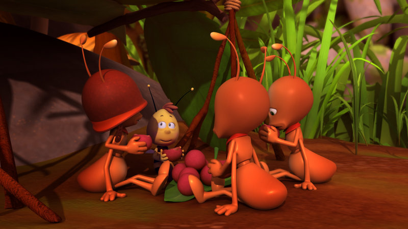 Der Energiesaft"Die Biene Maja", "Der Energiesaft." Rufus findet in der Wiese einen Flakon mit Gelee Royal. Er weiß, dass er eigentlich nur für die Bienenkönigin reserviert ist, aber er trinkt trotzdem davon. Der Effekt ist erstaunlich. Rufus wird zur Rennschnecke und saust durch die Wiese. Die Ameisen, die das sehen, wollen ebenfalls vom Gelee Royal trinken, und das Ergebnis ist bei ihnen das gleiche wie bei Rufus. Schnell spricht es sich rum, dass der magische Saft ungeahnte Energien freisetzt. Dass Gelee solchen Effekt hat, ist Maja allerdings neu. Flip erklärt ihr, dass die Energie einzig im Kopf der Wieseninsekten entsteht, weil sie fest daran glauben, dass der Trank diese Wirkung hat. Doch der unangenehme Nebeneffekt ist, dass die Stimmung in der Wiese jetzt viel hektischer und ungemütlicher ist als vorher. Deshalb nimmt Maja das Gelee Royal weg und ersetzt es durch einen anderen Saft, den sie den Insekten gibt. Als sie ihnen dann später erzählt, dass der gar keine magische Wirkung hat, begreifBild: © ORF eins