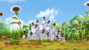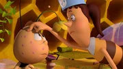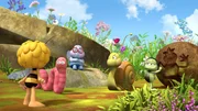 Das süße Geheimnis"Die Biene Maja", "Das süße Geheimnis." Rufus sitzt auf einem Seerosenblatt im Teich und kommt nicht mehr an Land. Maja und Willi wollen ihn an Land fliegen, nur leider ist Rufus so schwer, dass sie ihn nicht heben können. Da können nur noch die Ameisen helfen. Aber wo sind die bloß? Es ist weit und breit keine Ameise in Sicht. Maja und Willi fliegen zum Ameisennest, wo sie Emil und Egon antreffen, die ausplaudern, dass die Ameisen einen Schatz gefunden haben. Deswegen patrouillieren sie nicht wie sonst über die Wiese. Willi und Maja sind neugierig und machen sich auf die Suche. Der Schatz ist ein Berg aus Würfelzucker, der mitten in der Wiese liegt. Die Ameisen klettern darauf herum und wollen den Zucker abtragen, bevor es zu regnen beginnt. Emil und Egon verplappern sich ein weiteres Mal und schon stehen sämtliche Wiesenbewohner am Zuckerberg. Alle wollen etwas abhaben von dem köstlichen Schatz. Paul und Kurt geraten in einen Streit darüber wem der Zucker gehört. Sie beschließen eineBild: © ORF eins