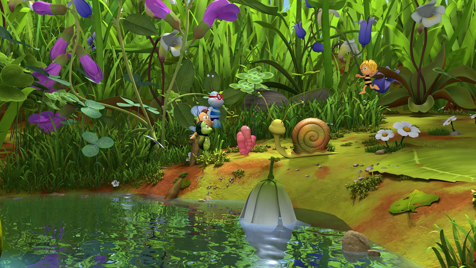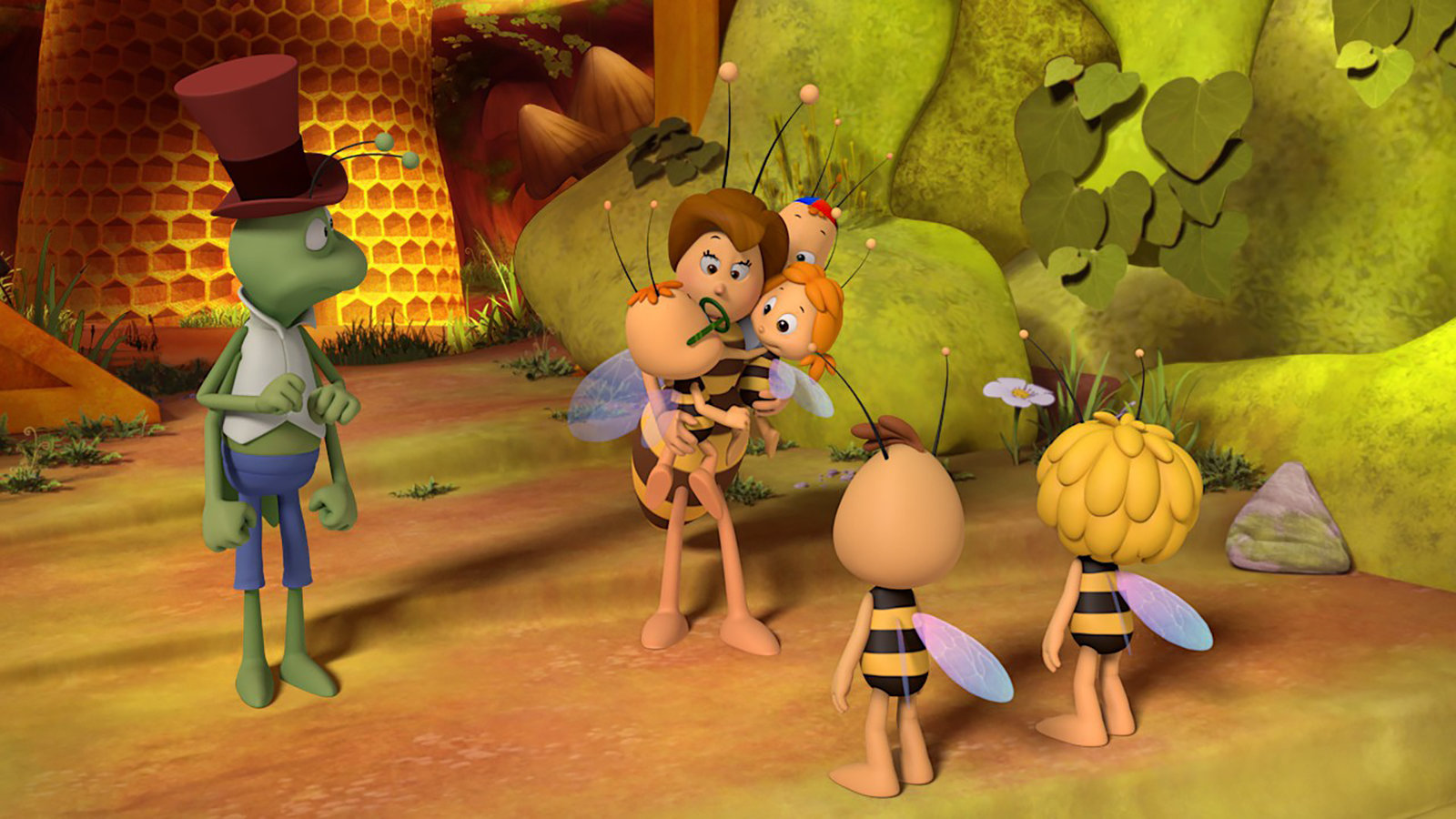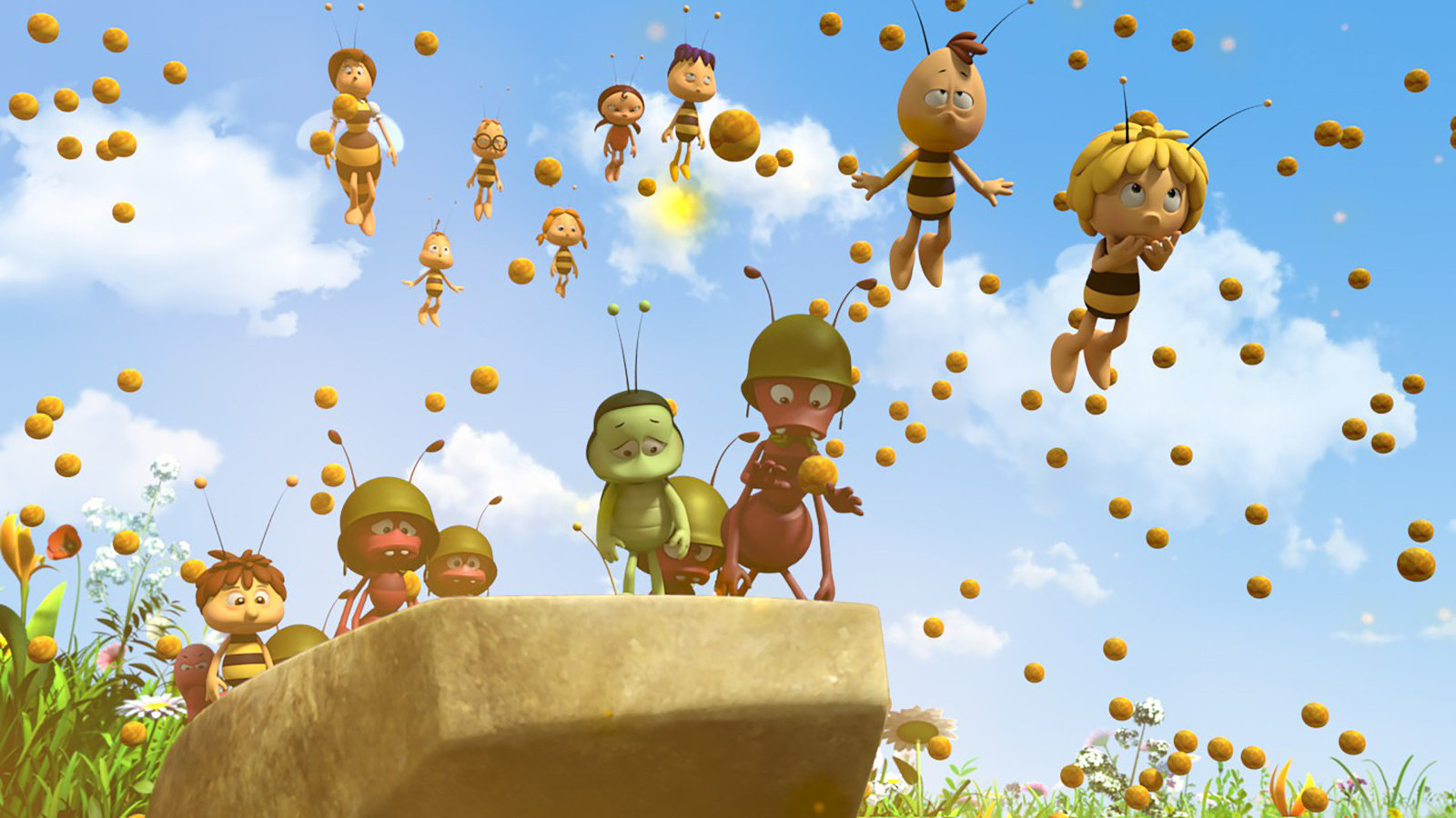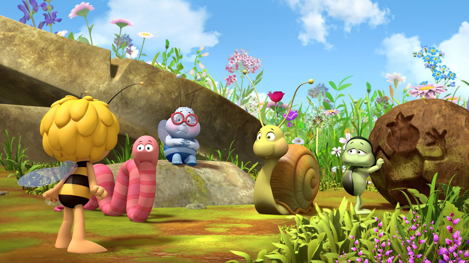 Die Wiesenfreunde"Die Biene Maja", "Die Wiesenfreunde." Maja möchte mit ihren Freunden ein Theaterstück über Freundschaft zwischen Insekten aufführen. Das Stück hat Maja selbst geschrieben. Doch den Freunden gefällt es nicht. Sie beschweren sich. Als Maja nicht auf ihre Wünsche eingeht, verlassen sie die Probe. Die Aufführung droht zu platzen. Maja muss sich etwas einfallen lassen, will sie nicht nur ihr Stück retten, sondern auch die Freundschaft unter den Darstellern wiederherstellen. In ihrer Verzweiflung wendet sie sich an Flip. Der Grashüpfer rät ihr, sich zurückzuziehen, damit die anderen merken, wie wichtig Maja für die Gruppe ist. Doch das klappt leider nicht wie geplant. Bis es am Ende zu einer gemeinsamen Aufführung kommt, müssen die Wiesenfreunde ein gefährliches Abenteuer bestehen.Bild: © ORF eins