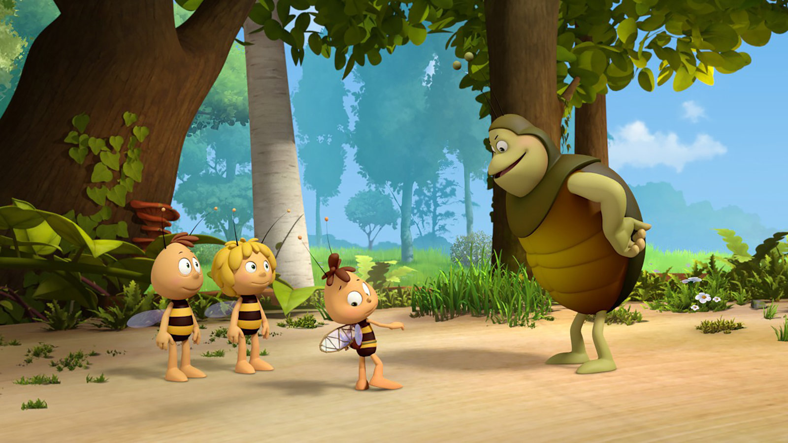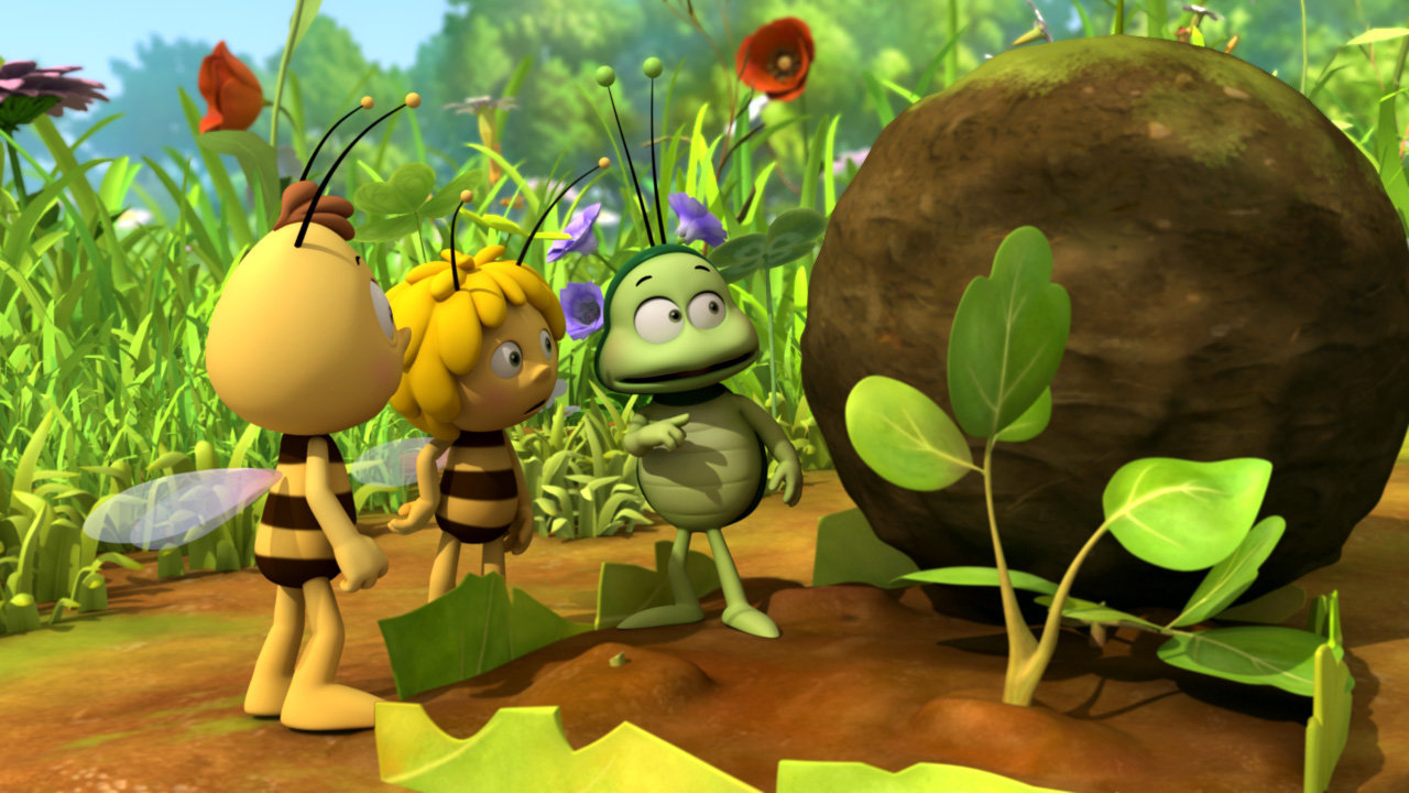 Majas GeburtDie kleinen Bienchen treffen zum ersten Mal einen Mistkäfer.Bild: © ZDF und Studio 100 Animation
