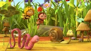 Die kranke Königin"Die Biene Maja", "Die kranke Königin." Die Bienenkönigin spricht vor versammeltem Bienenstock den rituellen Frühlingsgruß, der wie gewohnt damit endet, dass sie auf das Wohl des Bienenvolkes mit Akeleien-Nektar anstößt. Maja hat die Ehre, ihr den Flakon zu reichen. Doch sofort nach dem Trinken bricht die Königin mit höllischen Bauchschmerzen zusammen. Es wird klar, dass in dem Flakon kein Akelei-Nektar war. Doch was hat Maja der Königin serviert? Das wüsste sie selbst gerne. Nicht Maja, sondern Willi hat den Flakon gefüllt. Sie befragt Willi, der erzählt, dass er Walter gebeten hat, ihn zu befüllen. Doch der ist während des Flugs mit dem Flakon in der Hand mit Beatrix zusammengestoßen, weil diese nur darauf geachtet hat, möglichst wild und viel mit den Flügeln zu schlagen. Um den von ihr verursachten Zusammenstoß wiedergutzumachen, verspricht Beatrix Walter, neuen Nektar zu besorgen, doch sie findet keine Akelei und befüllt den Flakon kurzerhand mit Teichwasser.Bild: © ORF eins