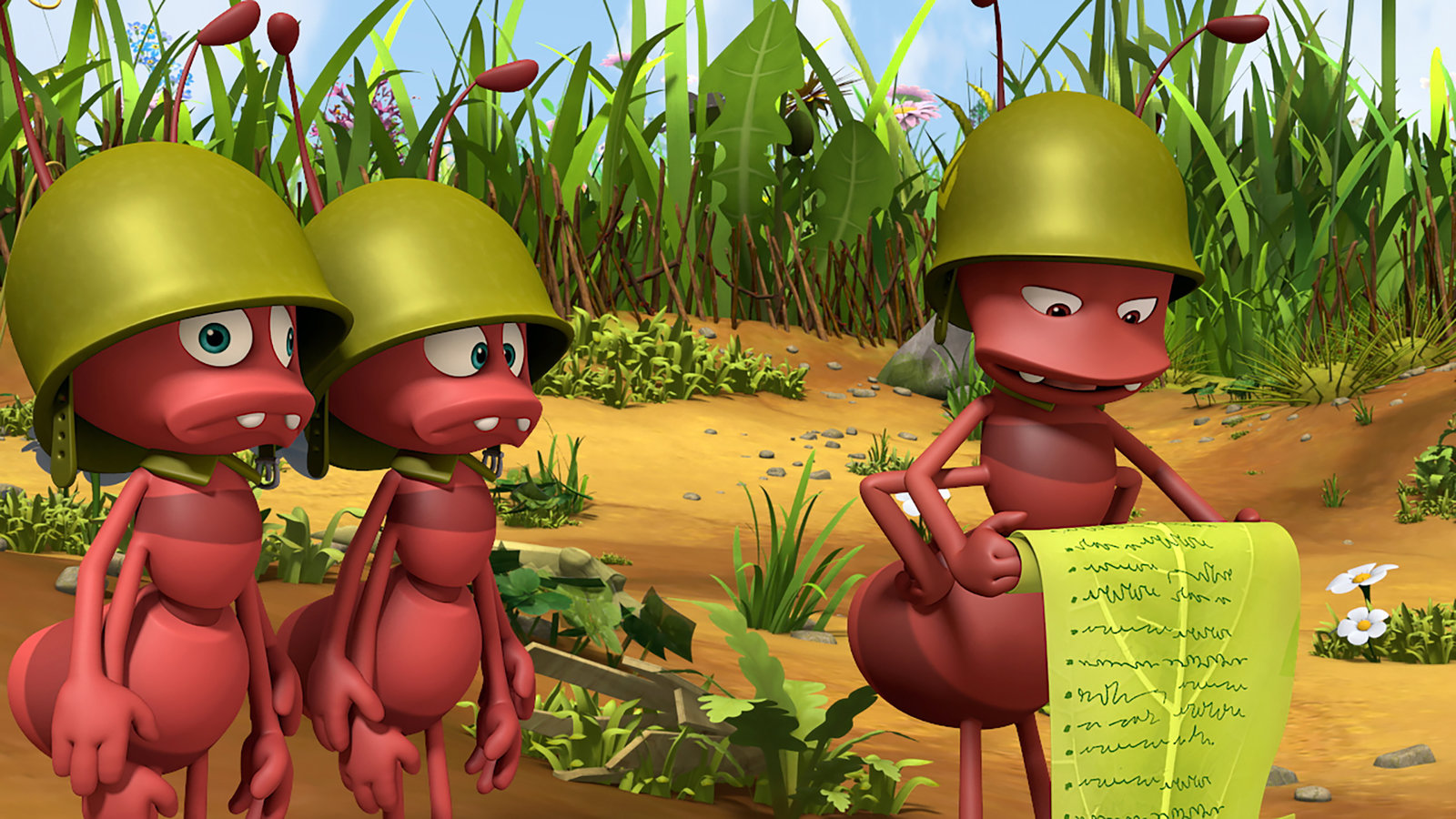Wer findet den Schatz?Paul, der Ameisenoberst, liest sehr langsam alle Pflichten der Ameisen vor.Bild: © ZDF/Studio100 Animation