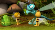 Wer findet den Schatz?"Die Biene Maja", "Wer findet den Schatz?." Flip veranstaltet seine jährliche Schatzsuche, und Maja will, wie jedes Jahr, mitmachen. Willi hat keine Lust, denn bei der letzten Suche wurde er fast von einem Frosch gefressen. Deshalb ist er froh, als die Königin Maja und ihn bittet, im Bienenstock zu bleiben, um auf ihre kleine Nichte Clara aufzupassen. Doch Clara hat von der Schatzsuche Wind bekommen und reißt aus. Heimlich beobachtet sie, wie das erste Rätsel lautet und löst es fix. Auch die anderen Rätsel, die Flip an verschiedenen Stationen für die Teilnehmer aufgestellt hat, sind kein Problem für Clara. Schnell lässt sie die anderen, wie Ben, Rufus und Max, hinter sich. Als Maja und Willi bemerken, dass Clara nicht mehr im Bienenstock ist, fliegen sie hinaus auf die Wiese, um sie zu suchen. Die beiden grasen nun ebenfalls alle Stationen der Rallye ab. Trotzdem verfehlen sie Clara, die bei der letzten Station falsch geflogen ist, was fatale Folgen hat.Bild: © ORF eins