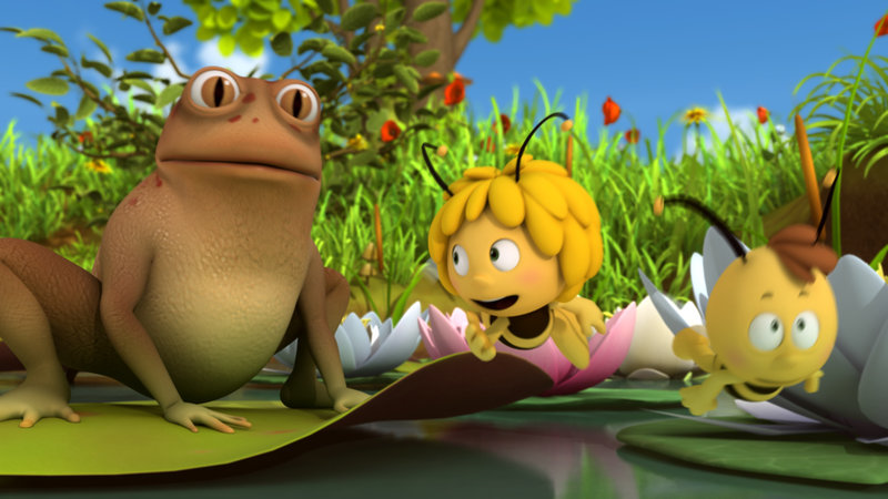 Die hungrigen FröscheDer alte Frosch ist zu hungrig um die Bienchen zu jagen.Bild: © ZDF und Studio 100 Animation