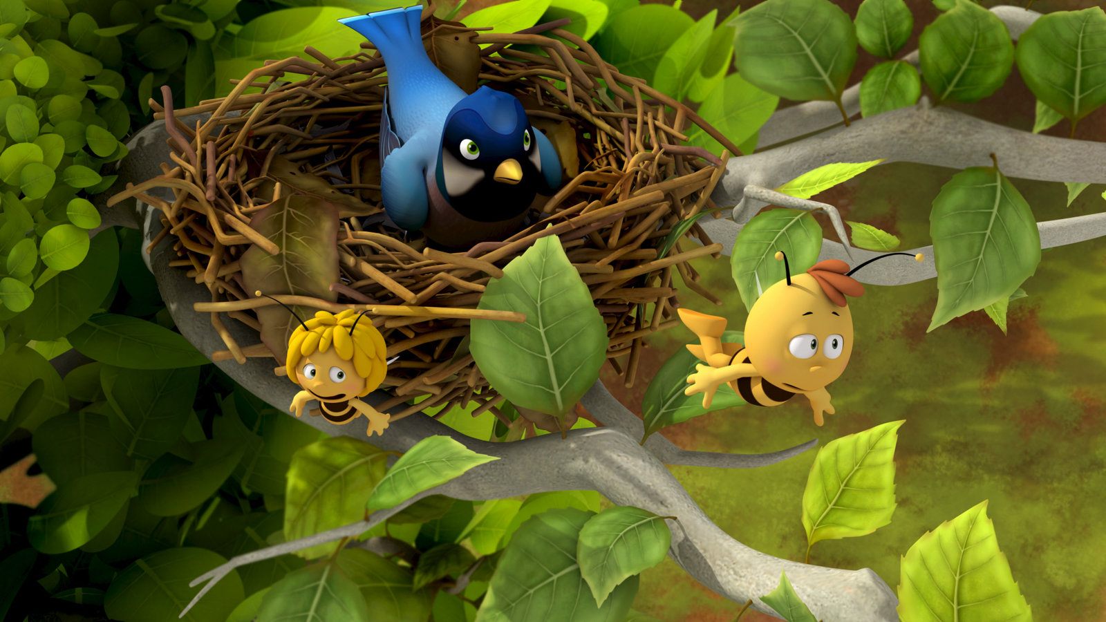 Max und die VogelhochzeitMaja und Willi flüchten aus dem Vogelnest.Bild: © ZDF und Studio 100 Animation