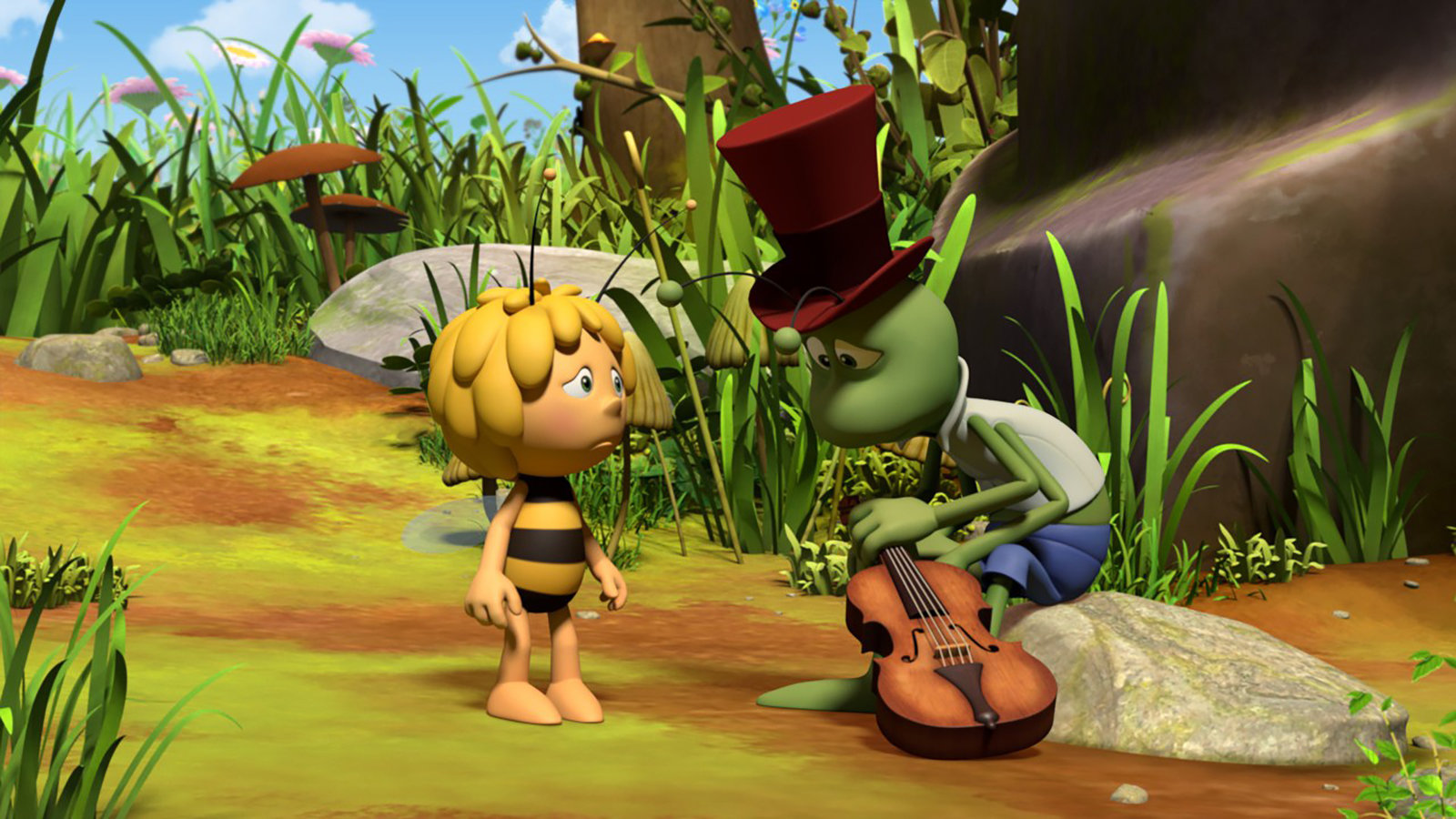 Flip will wegMaja fragt Kurt nach Flips Geige.Bild: © ZDF und 2017 Studio 100 Animation