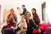 Eine gute MutterBilly Kuckuck (Aglaia Szyszkowitz) inmitten ihrer Lieben: Ursela Monn als Mutter Christel Geuskens (links), Vivien Sczesny als Tochter Hannah, Gregor Bloéb als Billys Ex Gunnar mit Julia Schäfle als seiner neuen Lebensgefährtin Melanie Przybylski. Die kleine Tochter der beiden wurde Billy anvertraut.Bild: © SWR/Martin Menke