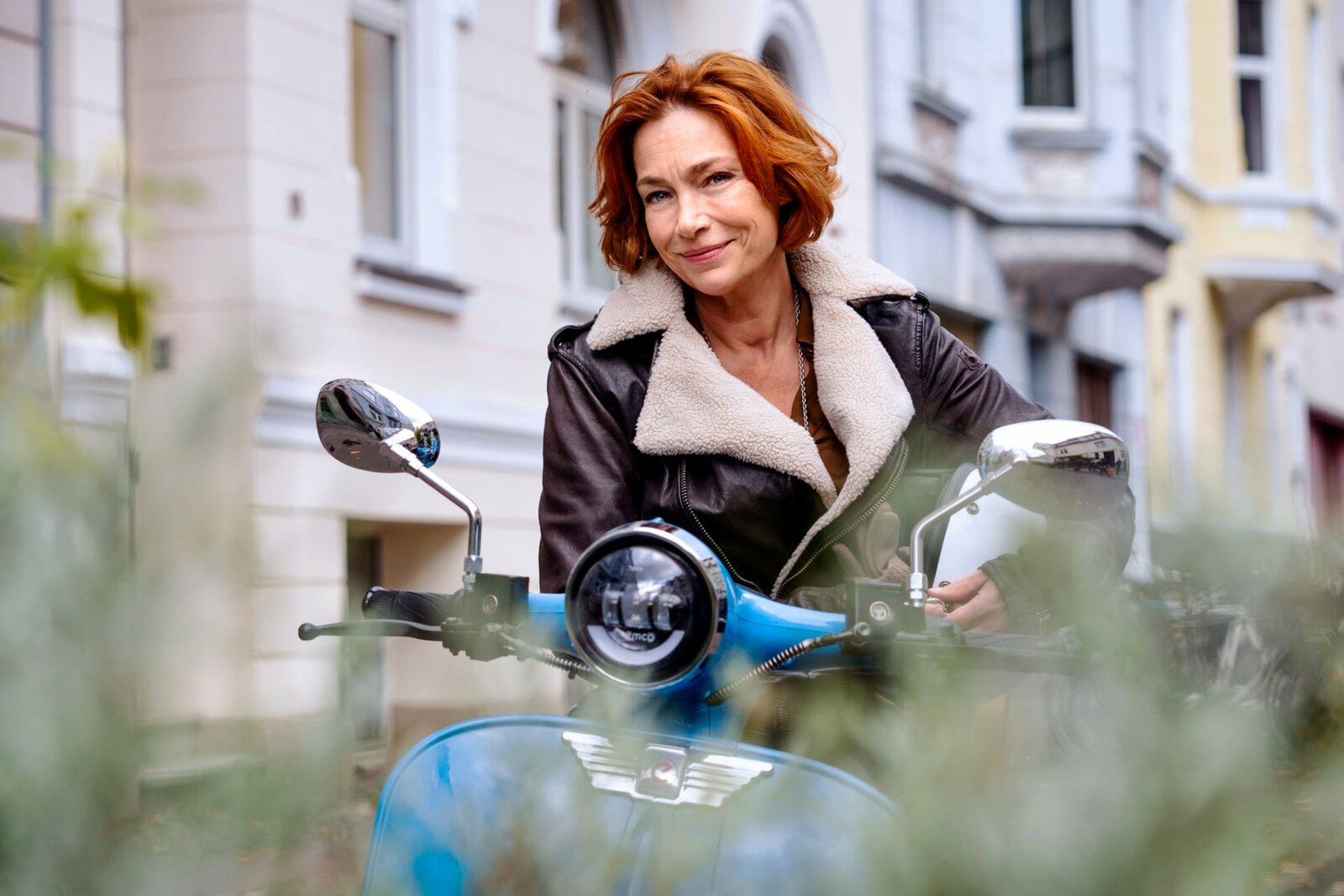 AngezähltBilly Kuckuck (Aglaia Szyszkowitz) ist neuerdings per Roller unterwegs.Bild: © ben knabe / SWR/FFP New Media GmbH/Ben Knabe / SWR Presse/Bildkommunikation