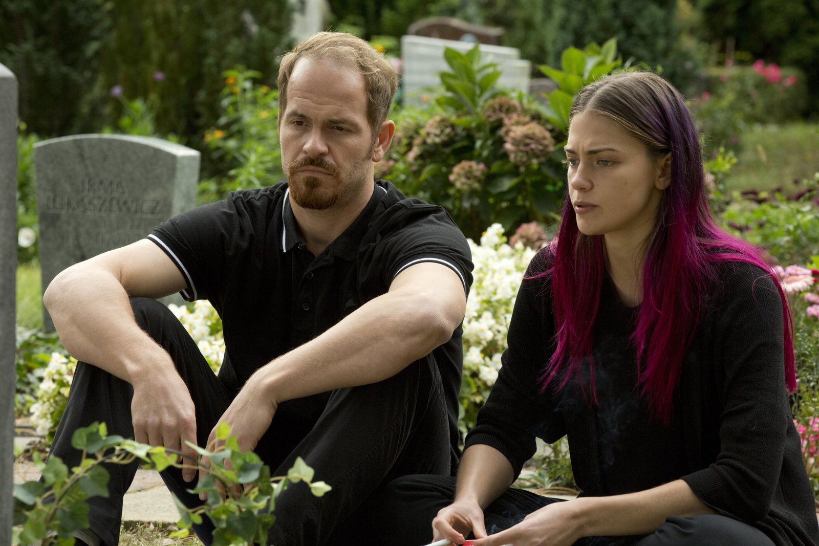 PapagenoFrank (Marc Ben Puch) und Sascha (Laura Berlin) besuchen das Grab von Yaro und Miriam.Bild: © ZDF und Volker Roloff.