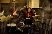 Teen SpiritWährend Frank (Marc Ben Puch) auf der E-Gitarre spielt, übernimmt Sascha (Laura Berlin) sein Schlagzeug. Gemeinsam spielen sie Nirvanas Song "Smells Like Teen Spirit".Bild: © ZDF und Volker Roloff