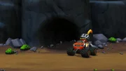 Das Dracheninsel-DuellBeim Dracheninsel-Rennen tritt Crusher gegen Blaze an. Um ihn zu besiegen schummelt er mal wieder und sperrt Blaze vor dem Start in einer dunklen Höhle ein.Bild: © Nickelodéon Junior