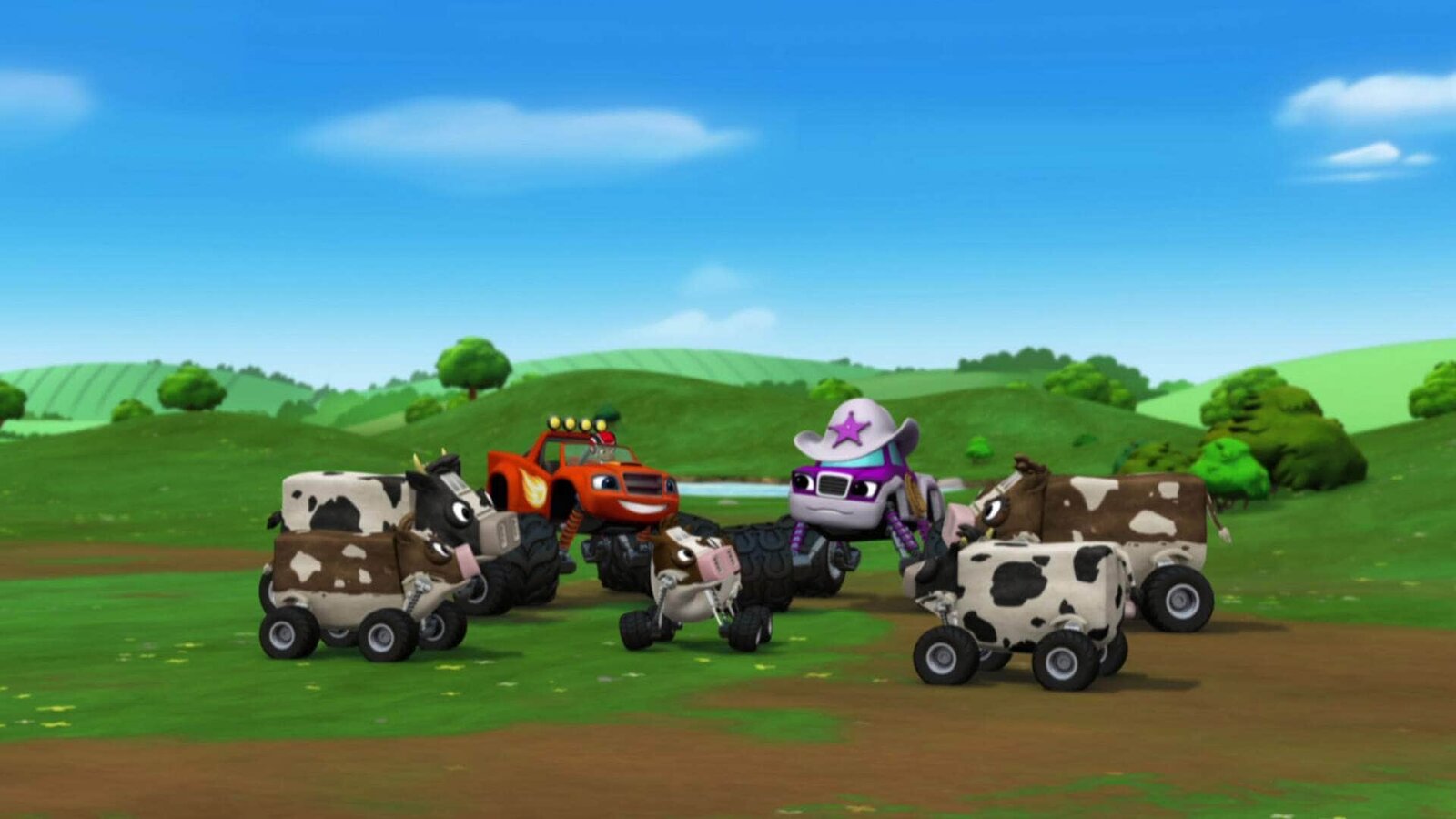 Das große Kuh-AbenteuerBlaze (li.) und Starla (re.) finden eine verlassene Kuhherde und Starla will die Kühe in ihrer warmen und gemütlichen Scheune unterbringen. Auf dem Weg dorthin müssen sie jedoch erst ein paar spannenden Abenteuer begegnen.Bild: © Super RTL