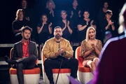 TalentÜberraschung: Die Jury hat mit dem Auftritt von Madita (Martina Eitner-Acheampong, vorne rechts im Anschnitt) nicht gerechnet. Alle drei Juroren (Gorilla (Paul Hartmut Würdig „Sido“, M.), Sahra Bora, r. und unbekannter Darsteller, l.) sind begeistert.Bild: © ZDF und Efe Cetinoezman