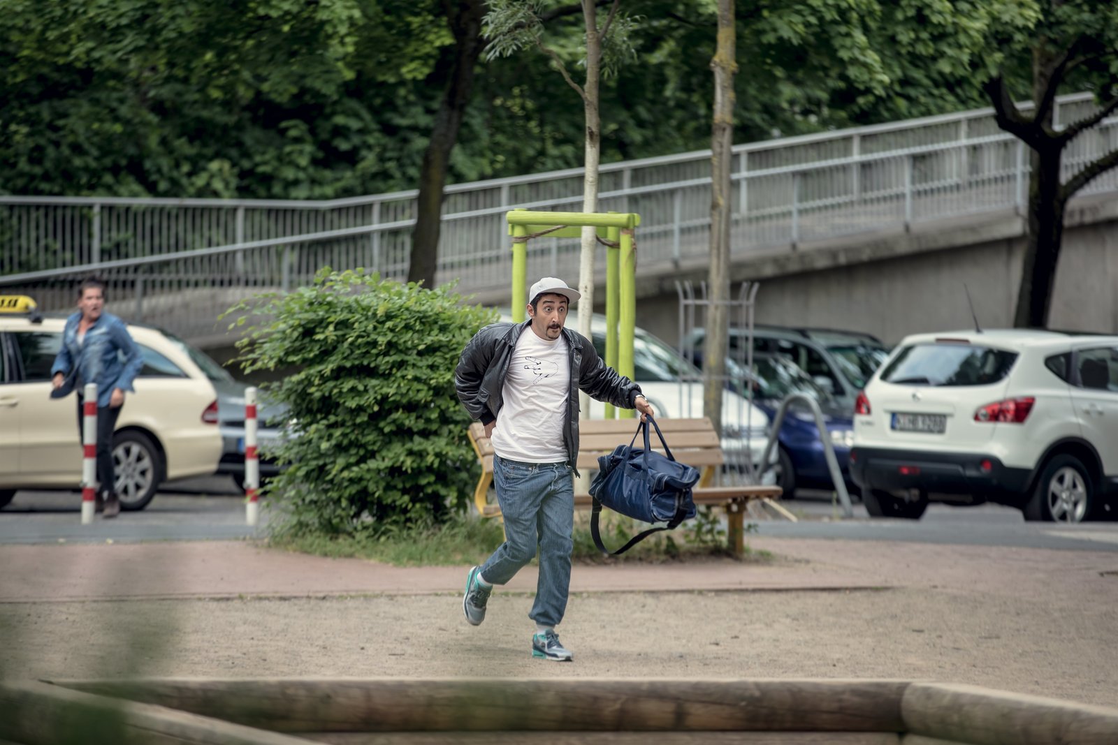 ComebackSol (Eko Fresh, r.) flieht vor der Taxifahrerin (Katy Karrenbauer, l.) .Bild: © ZDF und Efe Cetinoezman