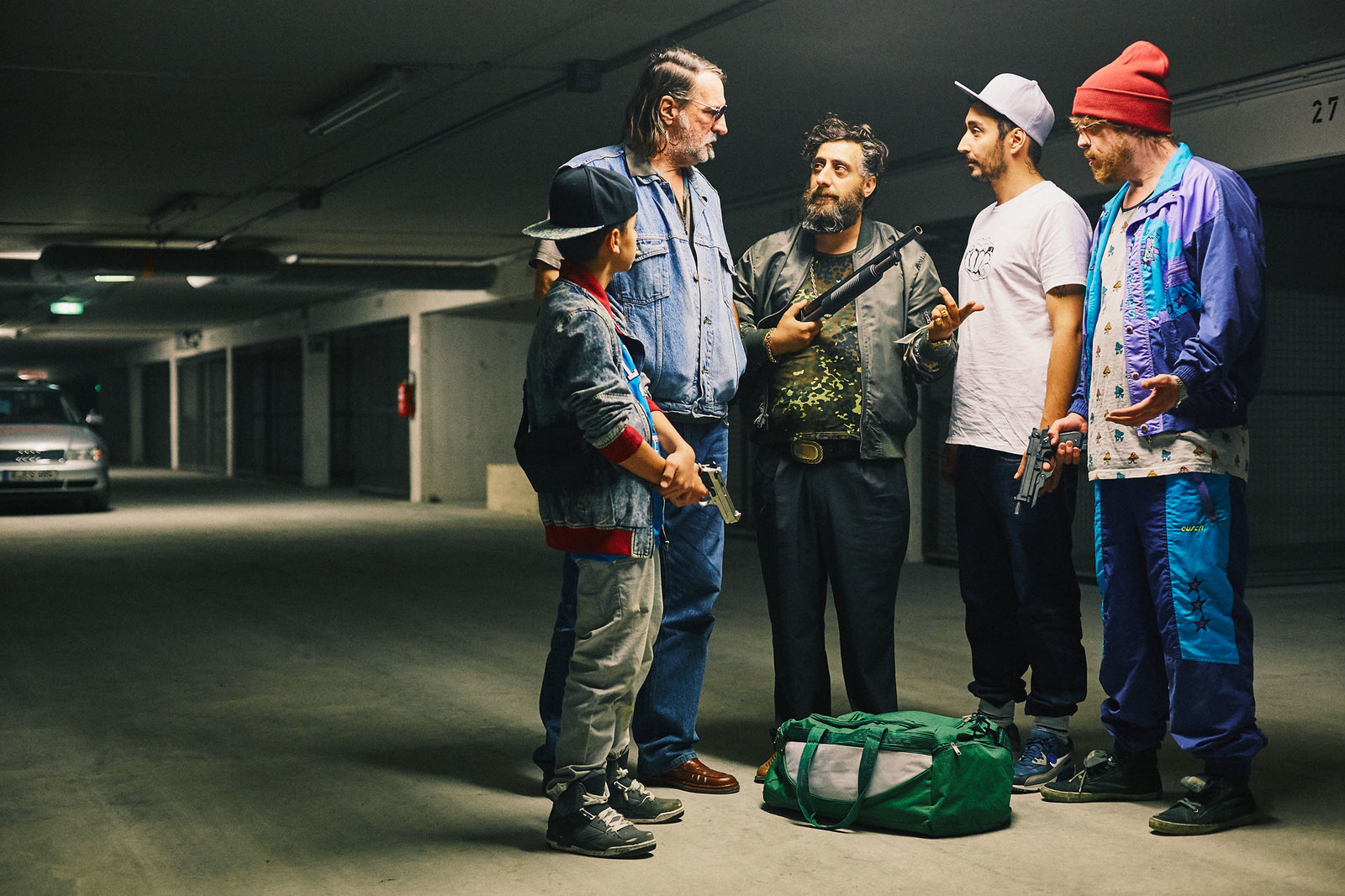 ÜberfallHardy (Sascha Reimann, r.), Sol (Eko Fresh, 2.v.r.), Volkan (Kida Khodr Ramadan, M.), Ronald (Andreas Hoppe, 2.v.l.), Deniz (Levin AllIn, l.)Bild: © ZDF und Efe Cetinoezman