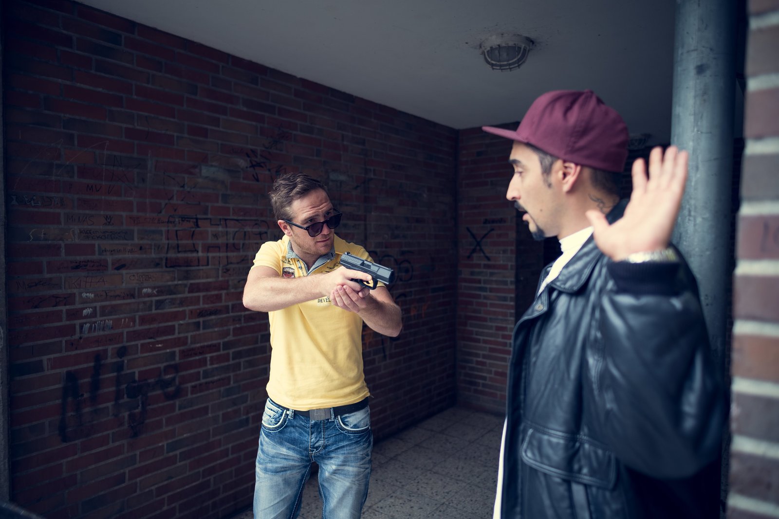 ÜberfallSol (Eko Fresh, r.), Ronald Meissner (Andreas Hoppe, l.)Bild: © ZDF und Efe Cetinoezman.