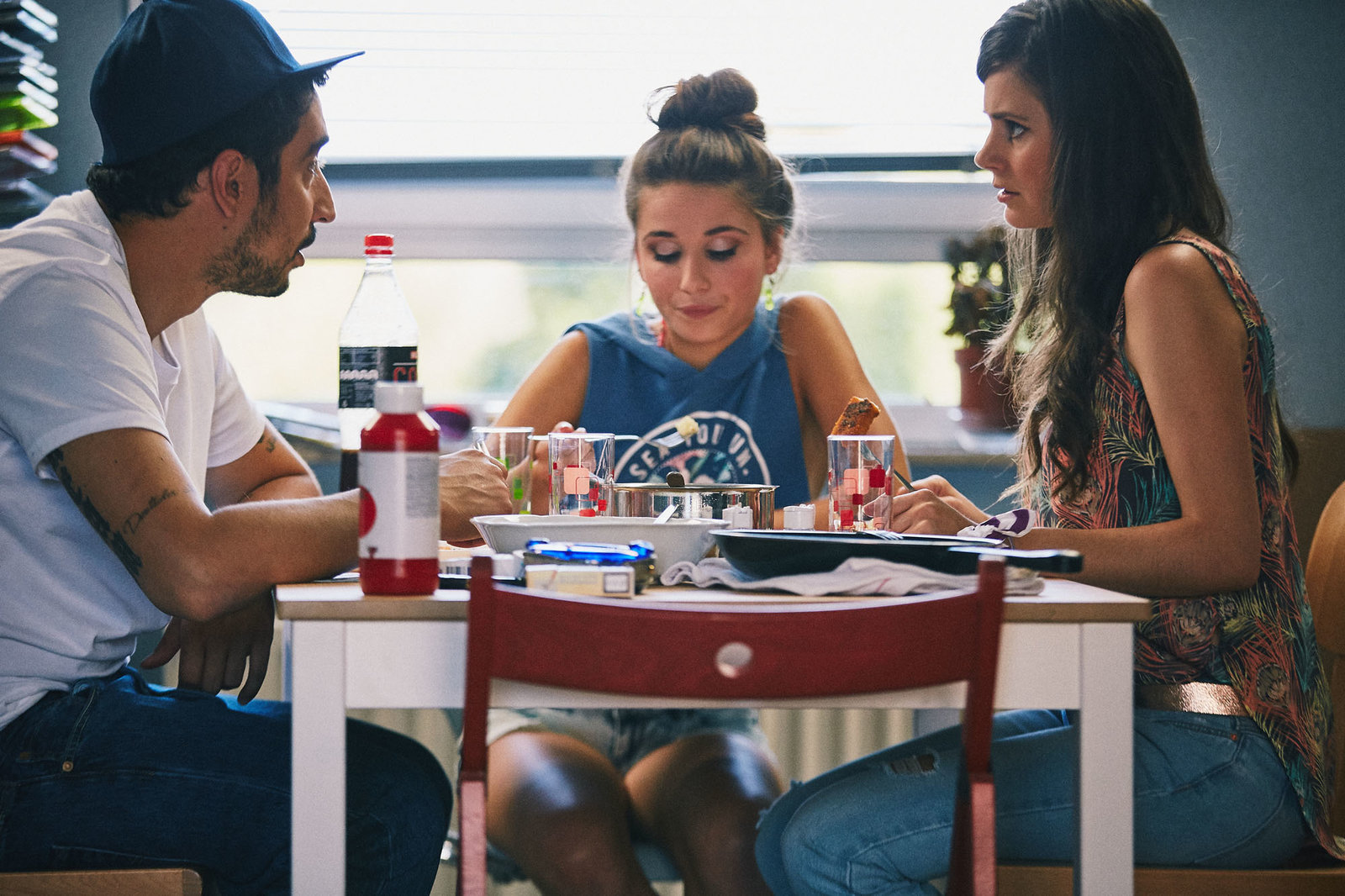 ElternSol (Eko Fresh, l.), Jessica (Joyce Ilg, r.), Lisa (Cosima Henman, M.).Bild: © ZDF und Efe Cetinoezman