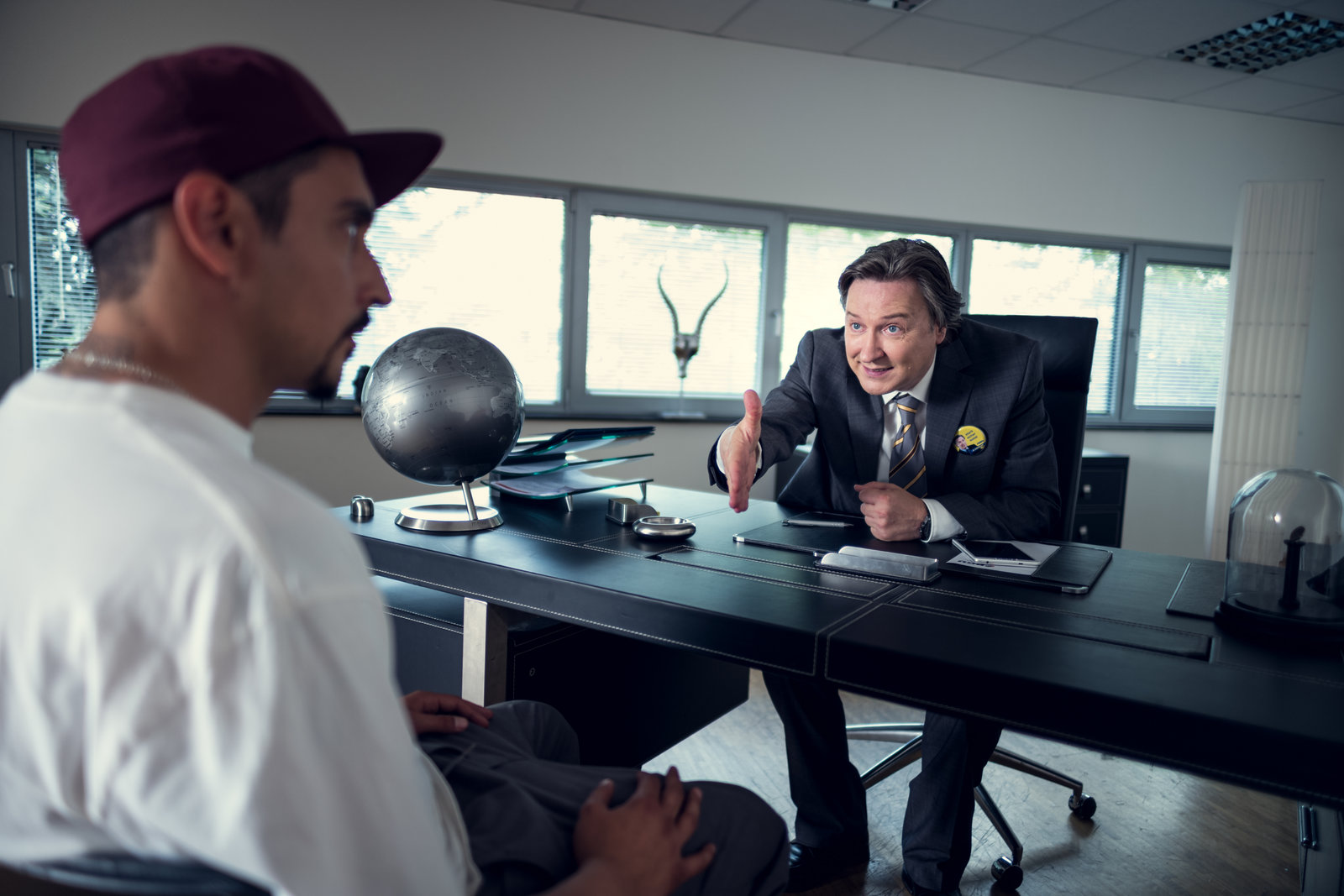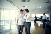 BürgermasterDr. Jens Hartmann (Martin Armknecht, r.) überzeugt Sol (Eko Fresh, l.), für ihn zu arbeiten.Bild: © ZDF und Efe Cetinoezman
