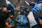 ÜberfallHardy (Sascha Reimann, r.), Sol (Eko Fresh, 2.v.r.), Ronald (Andreas Hoppe, m.), Deniz (Levin AllIn, 2.v.l.), Volkan (Kida Khodr Ramadan, l.)Bild: © ZDF und Efe Cetinoezman