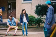 MuckibudeSol (Eko Fresh, M.), Philip (Frederick Lau, l.), Madita Berger (Martina Eitner-Acheampong, M.) und Gerhard (Jockel Tschiersch, r.).Bild: © ZDF und Efe Cetinoezman.