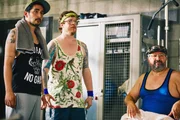 MuckibudeSol (Eko Fresh, l.), Kumpel Hardy (Sascha Reimann, M.), Herr Bulut (Aykut Kayacik, r.).Bild: © ZDF und Efe Cetinoezman