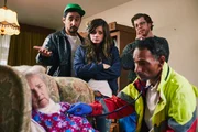 ElternSol (Eko Fresh, r.), Hardy (Sascha Reimann, l.), Hardys Mutter (Leslie Malton, M.), Lisa (Cosima Henman, 2.v.r.).Bild: © ZDF und Efe Cetinoezman