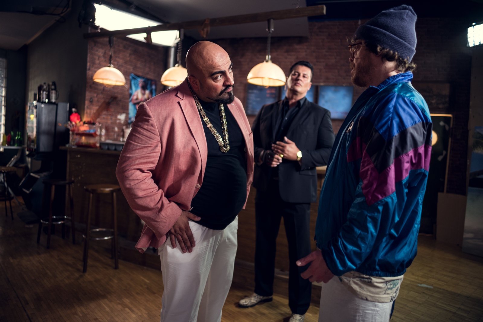 LottokingHardy (Sascha Reimann, r.) will mit dem Wrestling-Star Honey Badger (Giwar Hajabi ÑXatarì, l.) verhandeln.Bild: © ZDF und Efe Cetinoezman