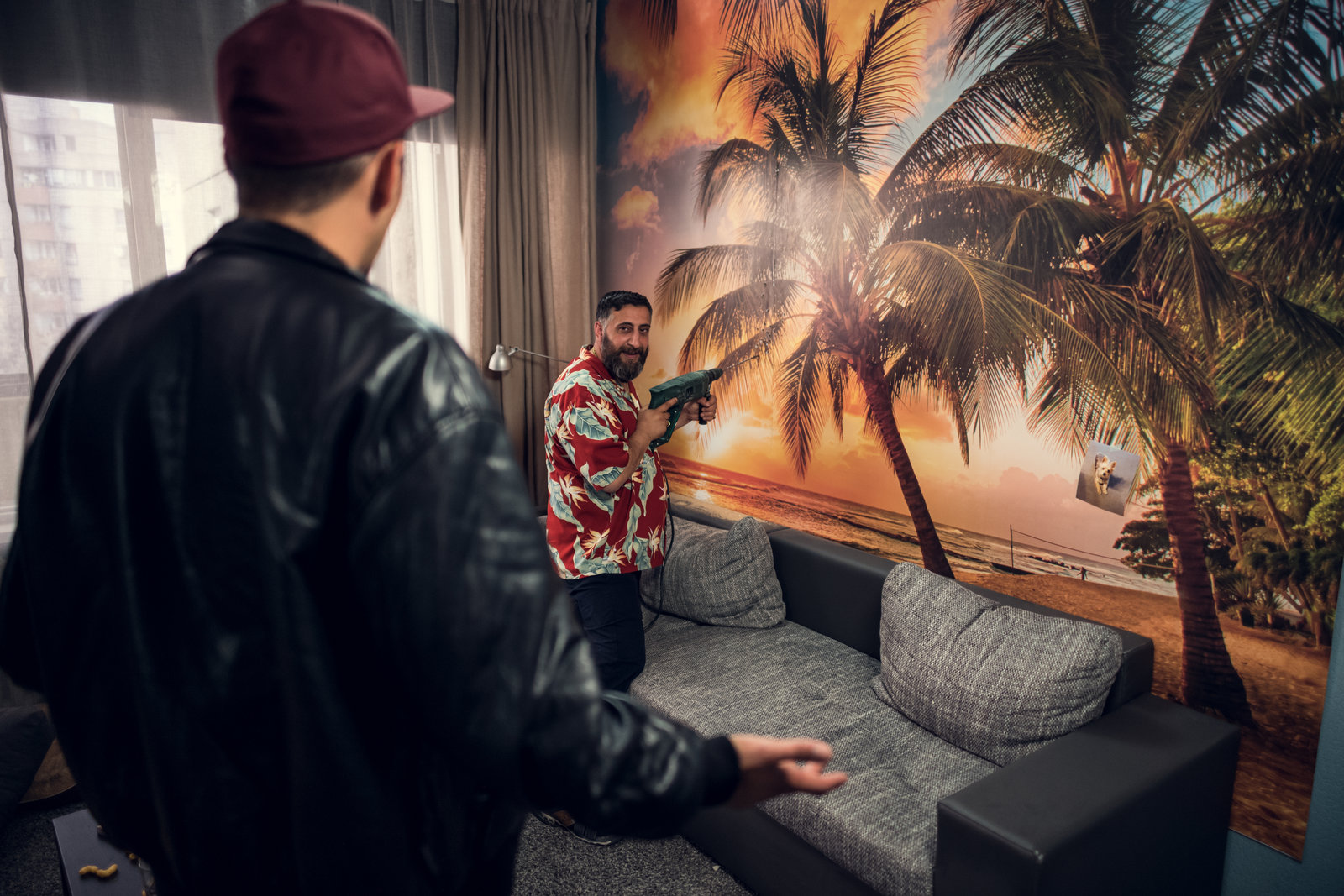 KokainSol (Eko Fresh, l.) erwischt Volkan (Kida Kodhr Ramadan, r.) beim Bohren von Löchern. Da hat wohl jemand zu viel vom Kokain genascht.Bild: © ZDF und Efe Cetinoezman