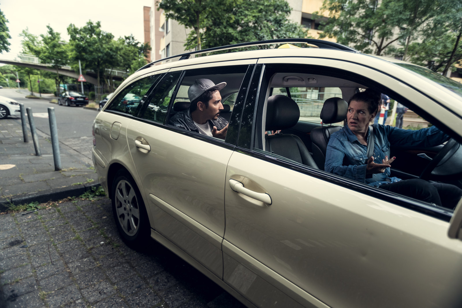 ComebackSol Berger (Eko Fresh, l.) und Hardy (Sascha Reimann, r.) werden von der Taxifahrerin (Katy Karrenbauer) überrumpelt.Bild: © ZDF und Efe Cetinoezman