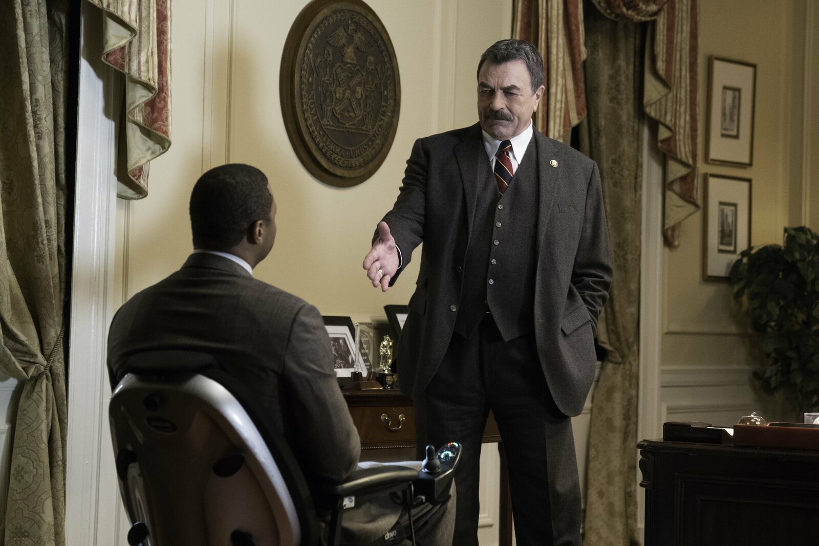 Die richtigen WorteMayor Poole (David Ramsey, l.) vetraut Frank Reagan (Tom Selleck, r.) an, dass er in den Ruhestand gehen möchte. Wie wird dieser wohl die unerwartete Nachricht auffassen?Bild: © 2017 CBS Broadcasting, Inc. All Rights Reserved Lizenzbild frei