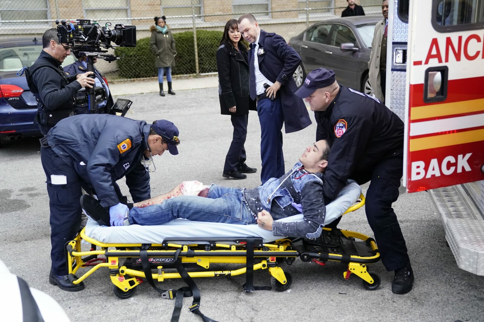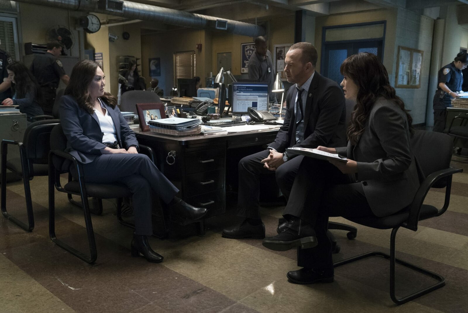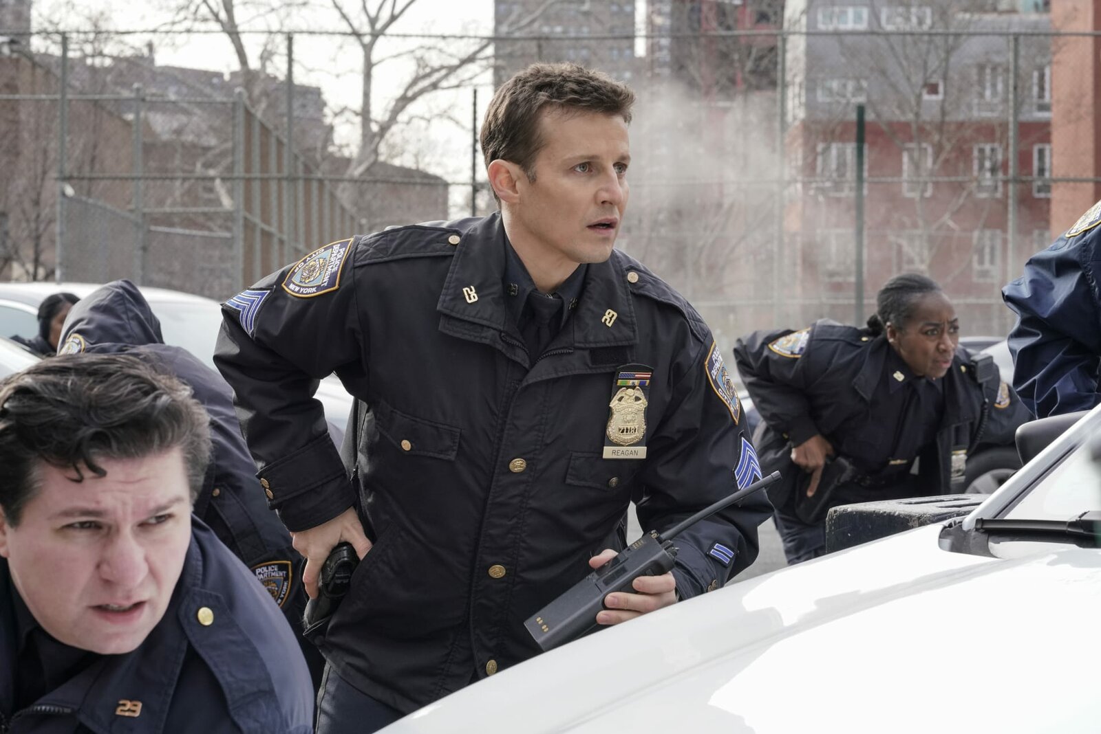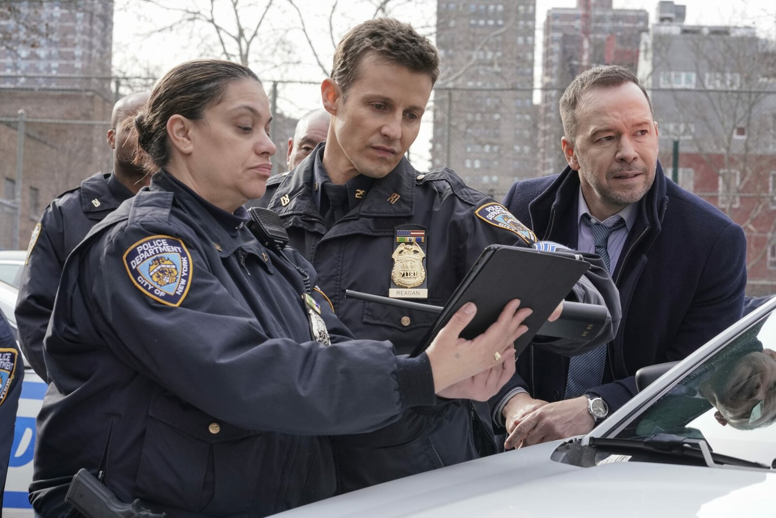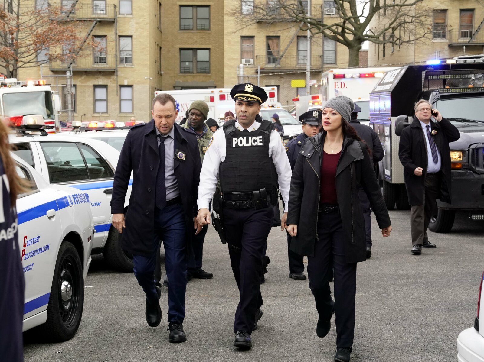 Schüsse in der SchuleDanny Reagan (Donnie Wahlberg), Chief Edwards (Jacinto Taras Riddick) und Maria Baez (Marisa Ramirez)Bild: © Fox Channel