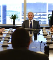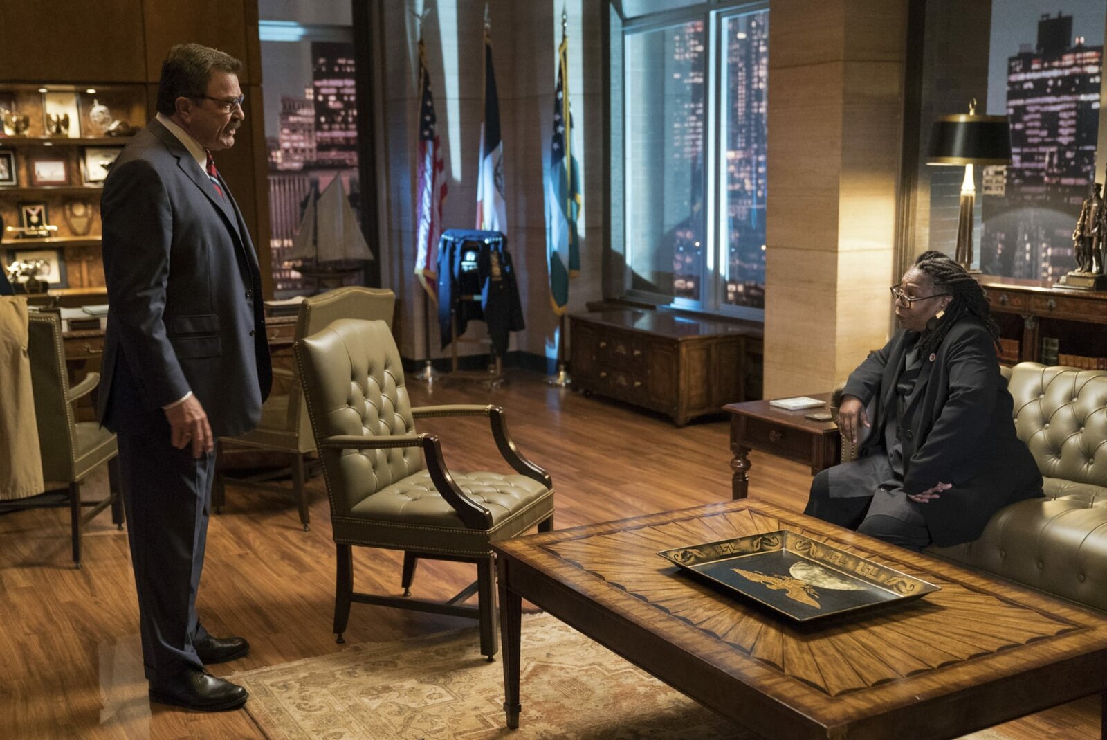 Unter DruckNach der eiskalten Ermordung dreier Juden, will Stein (Victor Graber, h.) zusätzliche private Sicherheitstruppen. Polizeichef Frank (Tom Selleck, v.) ist verärgert und fordert mehr Vertrauen in das NYPD. Geht es dabei etwa auch um sein eigenes Ego?Bild: © Fox