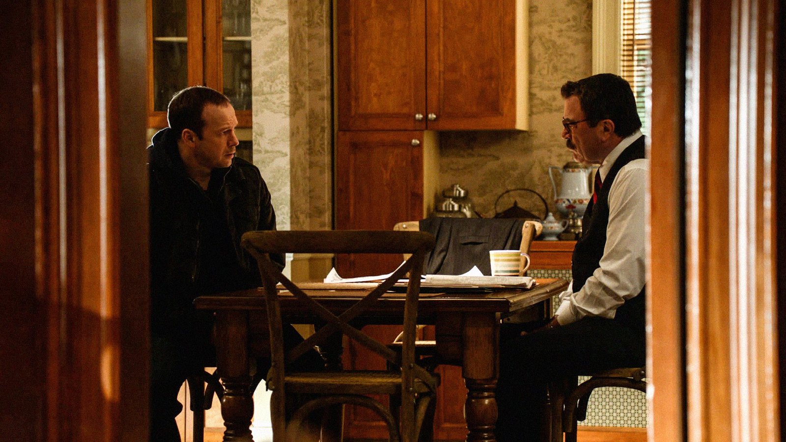 Die längste NachtKönnen Frank (Tom Selleck, r.) und sein Sohn Danny (Donnie Wahlberg, l.) einen Verdächtigen ausmachen, der den Detective dranbekommen möchte?Bild: © 2012 CBS Broadcasting Inc. All Rights Reserved. Lizenzbild frei