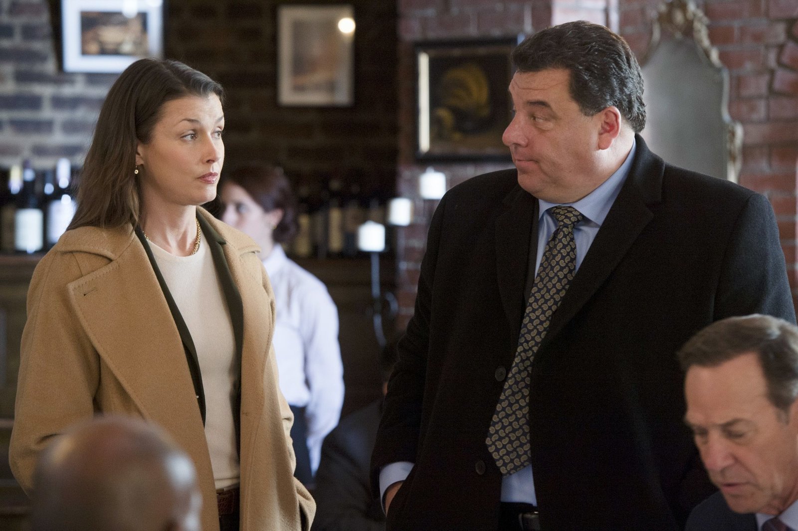 Zwei FingerErin Reagan (Bridget Moynahan, l.); Anthony Abetamarco (Steve Schirripa, r.)Bild: © 2019 CBS Broadcasting Inc. All Rights Reserved. / Patrick Harbron Lizenzbild frei
