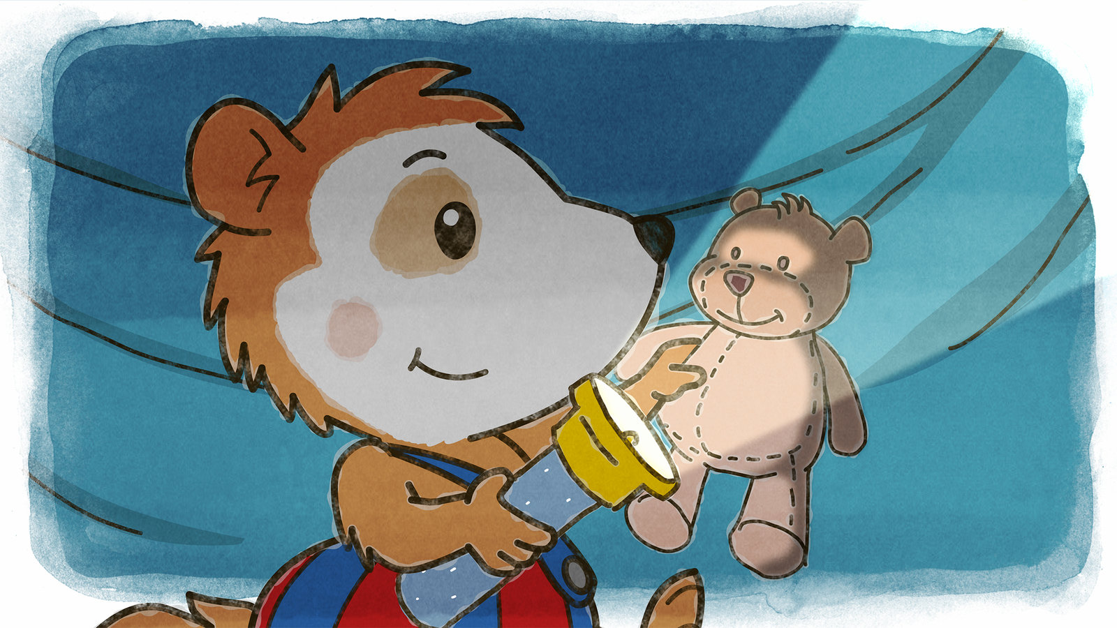 Bobo baut eine HöhleMit einer Taschenlampe kann Bobo seinen Teddy in der Höhle anleuchten.Bild: © JEP ANIMATION/WDR