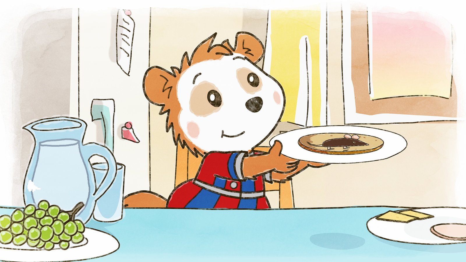 Bobo macht FrühstückBobo, Mama und Papa haben viel Spaß beim Essen: Sie belegen lustige Brotgesichter.Bild: © JEP ANIMATION/WDR